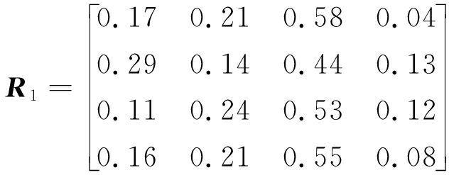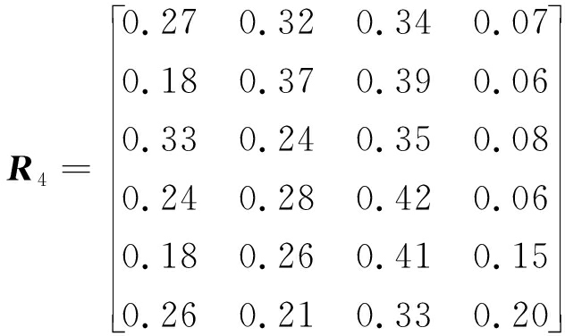 由式(6)、式(7)得CR=0.08<0.1,经判断矩阵的一致性检验可知,A4具有满意的一致性。