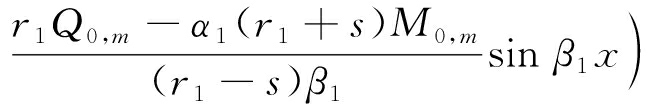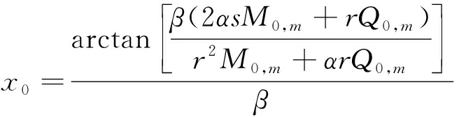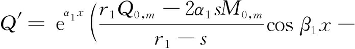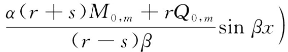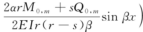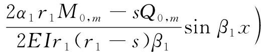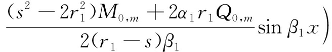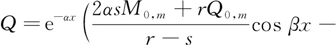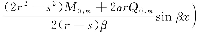 式中:M0,m为工作面煤壁位置(x=0)顶板第m层岩梁截面弯矩;Q0,m为工作面煤壁位置(x=0)顶板第m层岩梁截面垂直作用力。