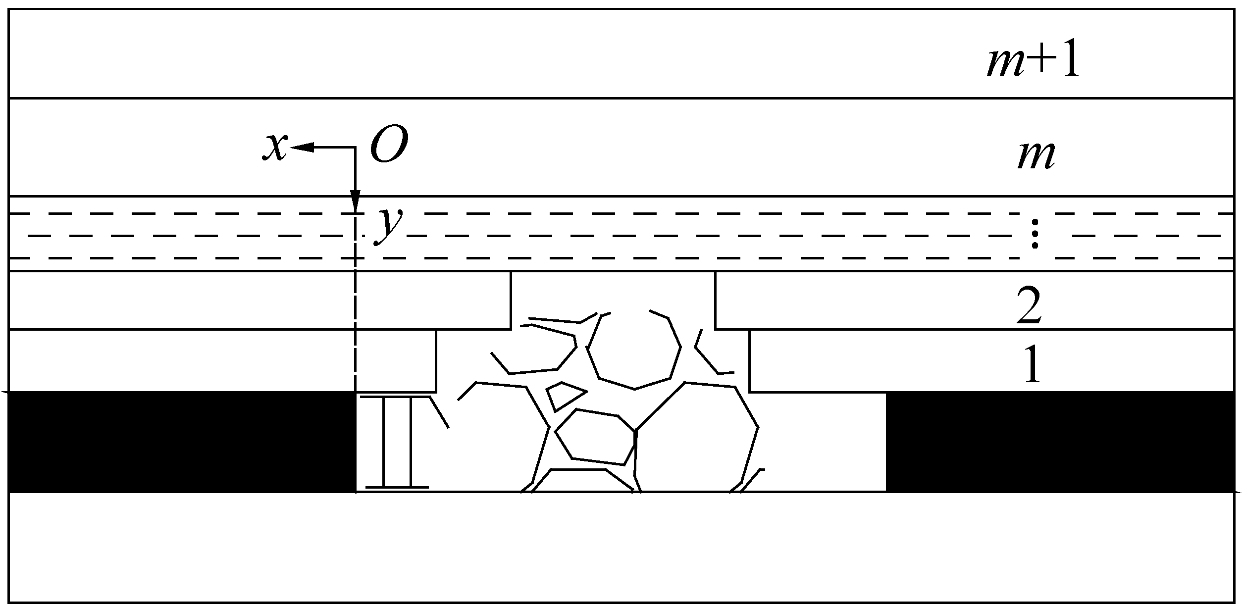 m—煤层上方岩梁层数量;x—第m层岩梁截面沿走