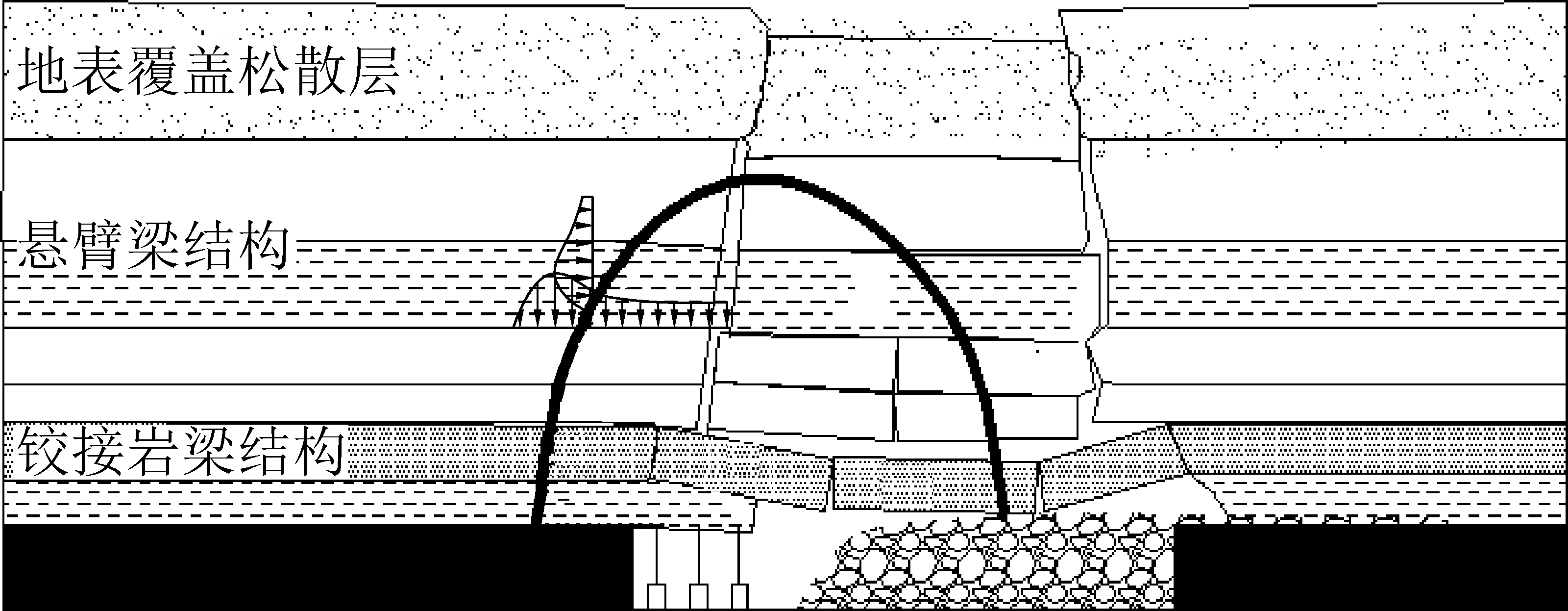 3)承压拱应力结构在初次失稳后,随着工作面开采在围岩中继续演化发展,对采场造成影响。结合浅埋深煤层开采后,基本顶及其基岩周期性断裂特征的实践,承压拱结构的发展变化规律符合“悬臂梁-铰接岩梁”结构失稳特点。