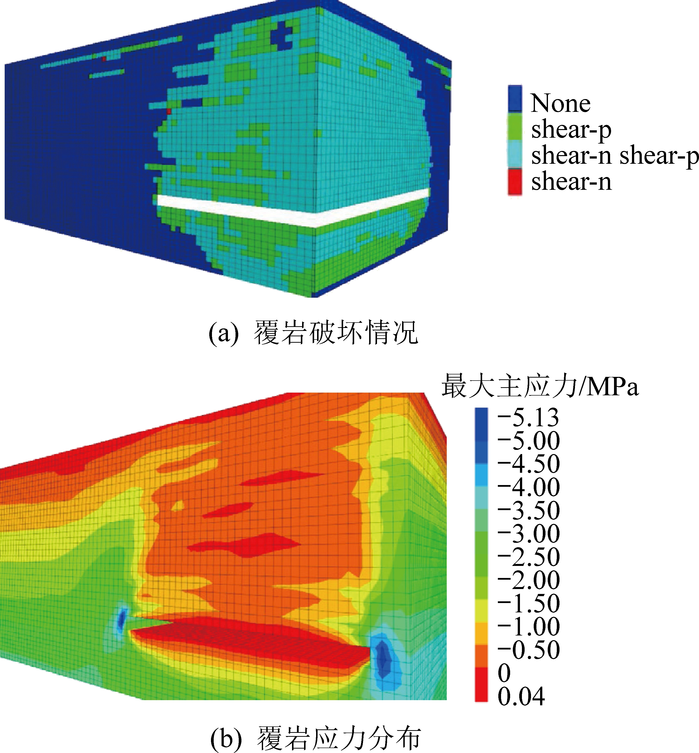 当工作面推进至100 m时,工作面上覆岩层的破坏情况和应力分布如图4所示。