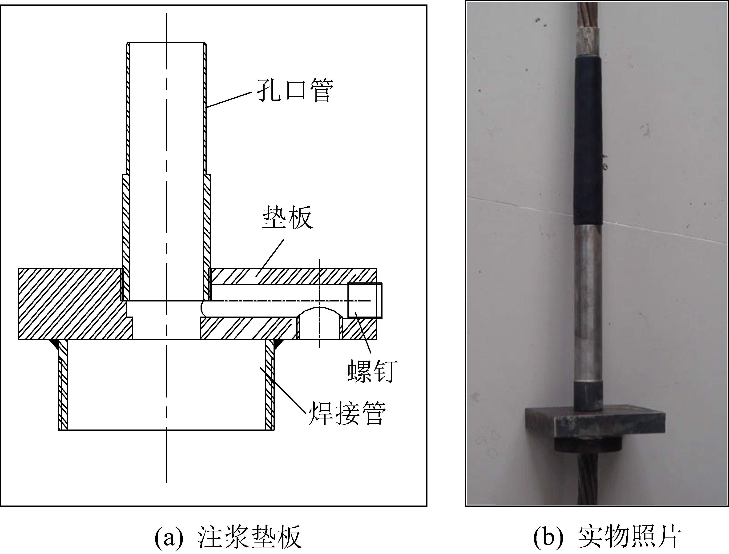 为解决受采动影响后巷道围岩破碎与锚索补强支护困难之间的矛盾,研发了孔壁注浆锚索(图4)。巷道掘进期间,使用常规锚索支护顶板,仅在锚索张拉预紧前安装注浆垫板,为后期注浆重构围岩创造条件。在经受采动影响后,利用注浆垫板对锚索进行注浆,一方面将已经破坏的围岩通过注浆重新胶结在一起,恢复顶板的完整结构,提高围岩自稳能力,另一方面通过注浆将已发生内锚松脱的锚杆、锚索恢复锚固性能,实现内锚破坏后的再锚固及全长锚固,提高锚索锚固的可靠性。