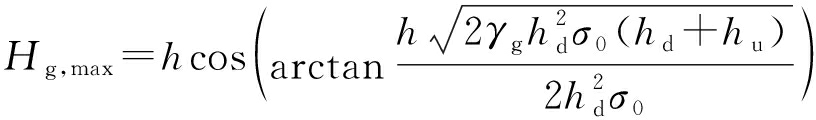 根据地表保护对象不同,关键层变形的要求也不同,根据岩层不破断的边界条件,可得出关键层稳定性的判据,关键层最大下沉量Hg,max为