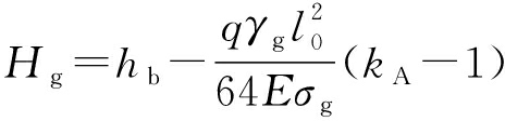 式中:σg为关键层所受拉应力,MPa;kA为关键层下覆岩层变形系数;l0为充填体长度,m;E为弹性模量。