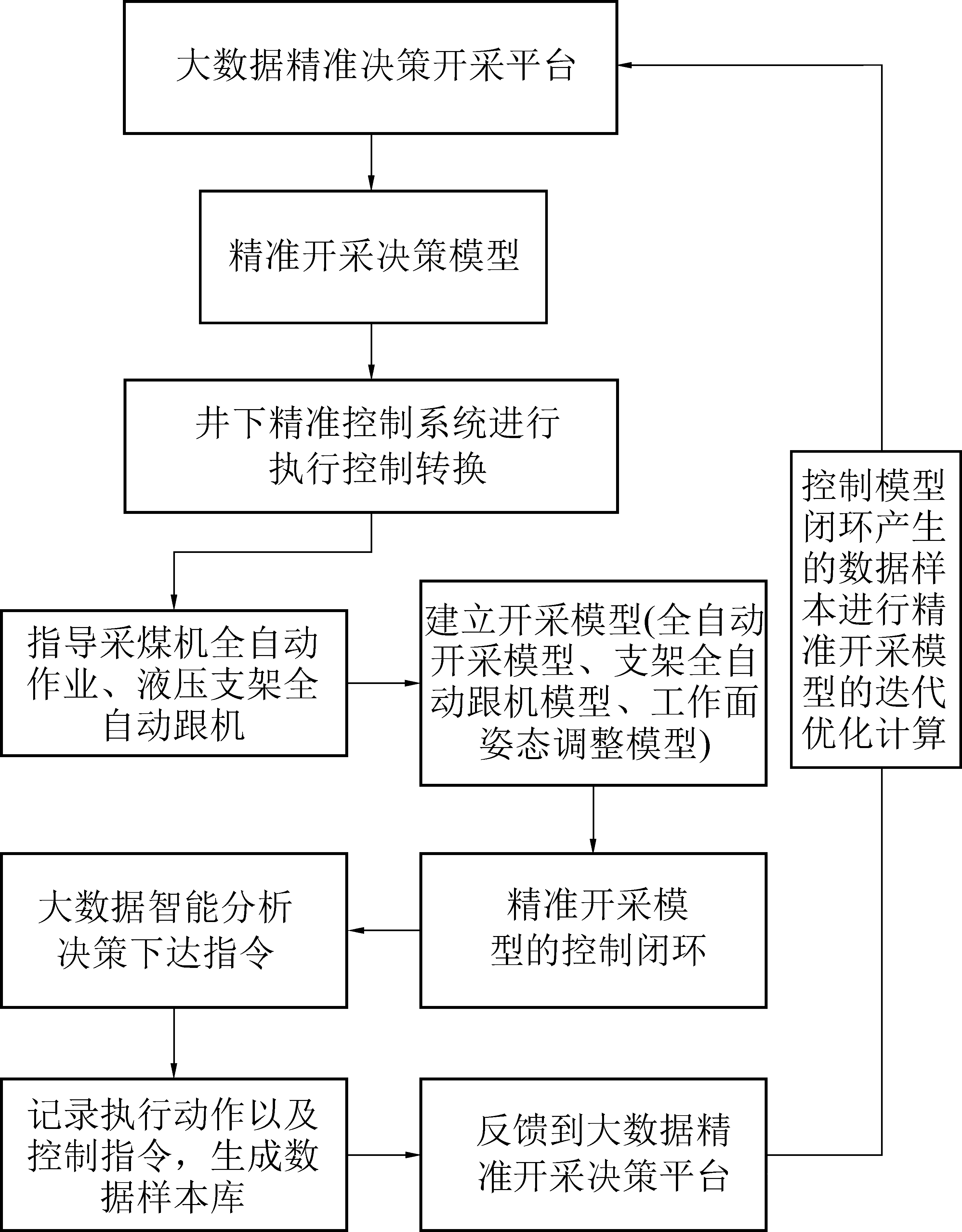 在透明地质数据、工作面实时监测数据的基础上,结合雷达测距数据和惯性导航三维姿态监测数据,通过大数据分析后得出的决策数据,来对采煤机截割曲线和液压支架自动跟机拉架、推移刮板输送机行程等关键数据进行修正更新,从而达到动态生产过程中对综采设备精准控制和连续推进的目的。