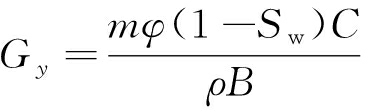 式中:G为研究区煤层气资源量,m3;Gx为吸附气资源量,m3;Gy为游离气资源量,m3。