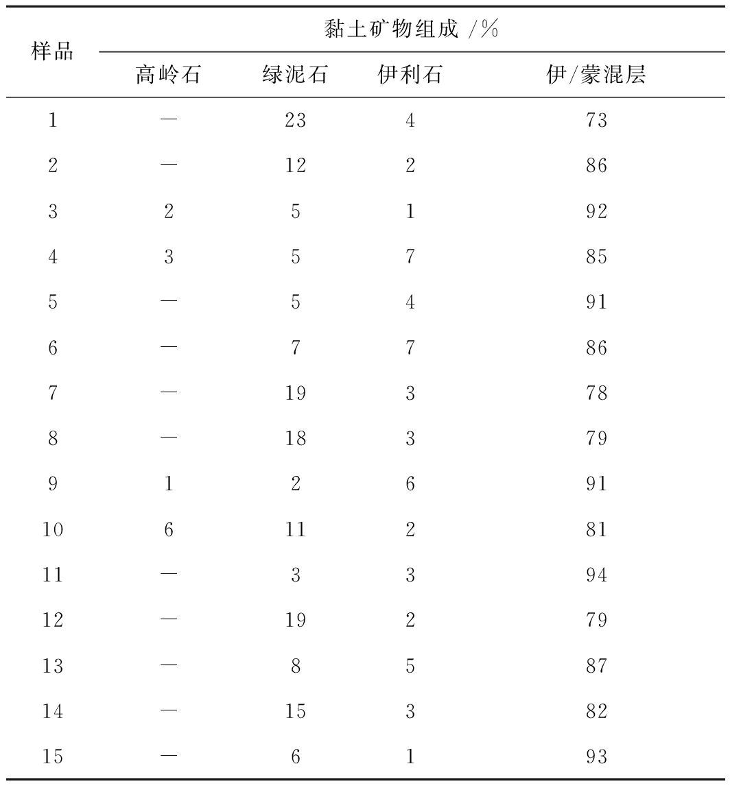 样品 黏土矿物组成 /%高岭石绿泥石伊利石伊/蒙混层1-234732-122863251924357855-54916-77867-193788-183799126911061128111-339412-1927913-858714-1538215-6193