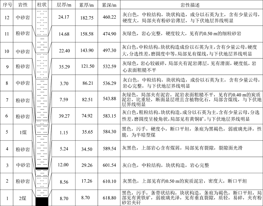 表1 130205工作面(1916)钻孔煤层及其覆岩岩石物理力学性质