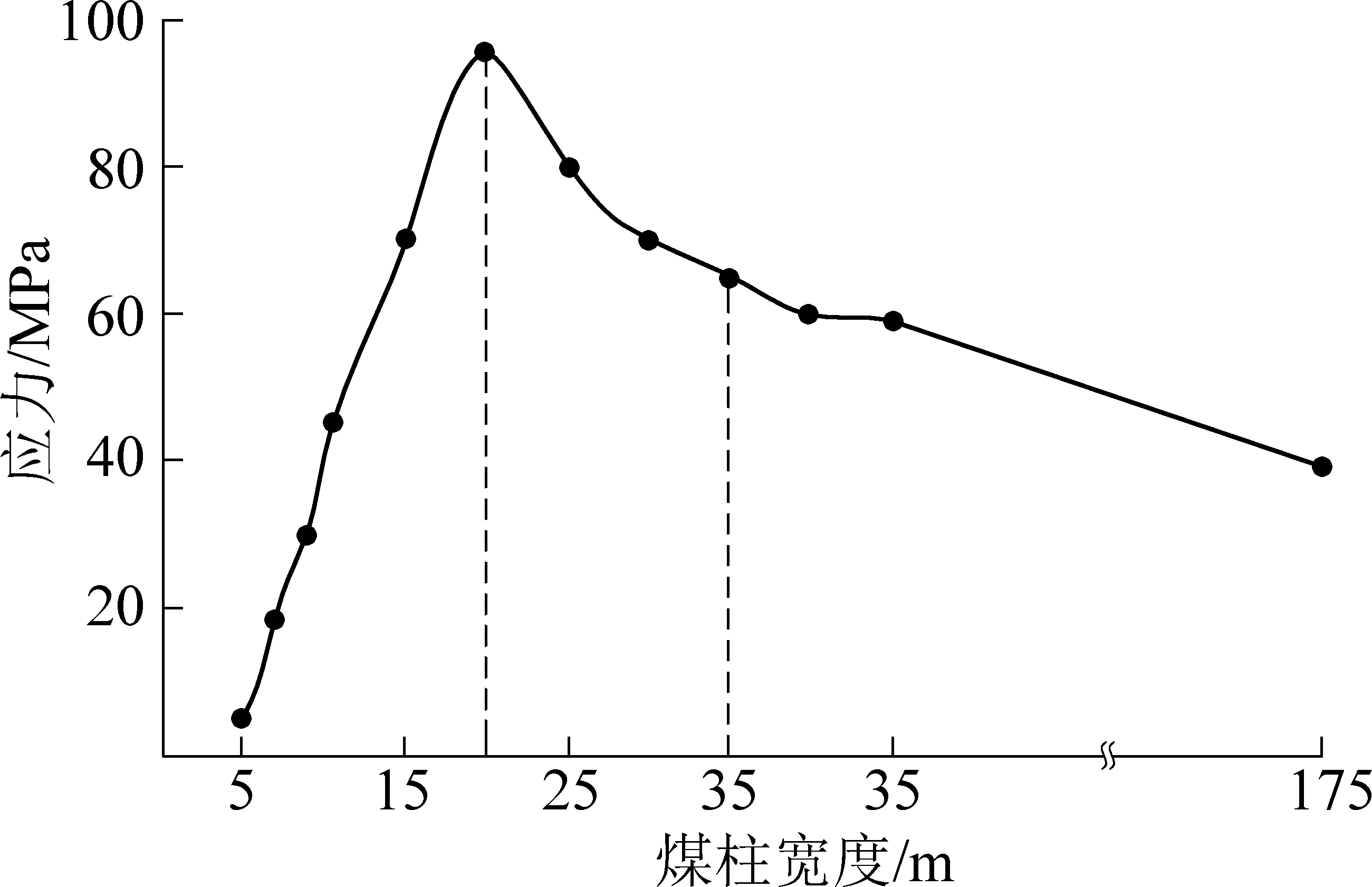 煤柱宽度/m56789101520253545煤柱应力/MPa510202530407090766560