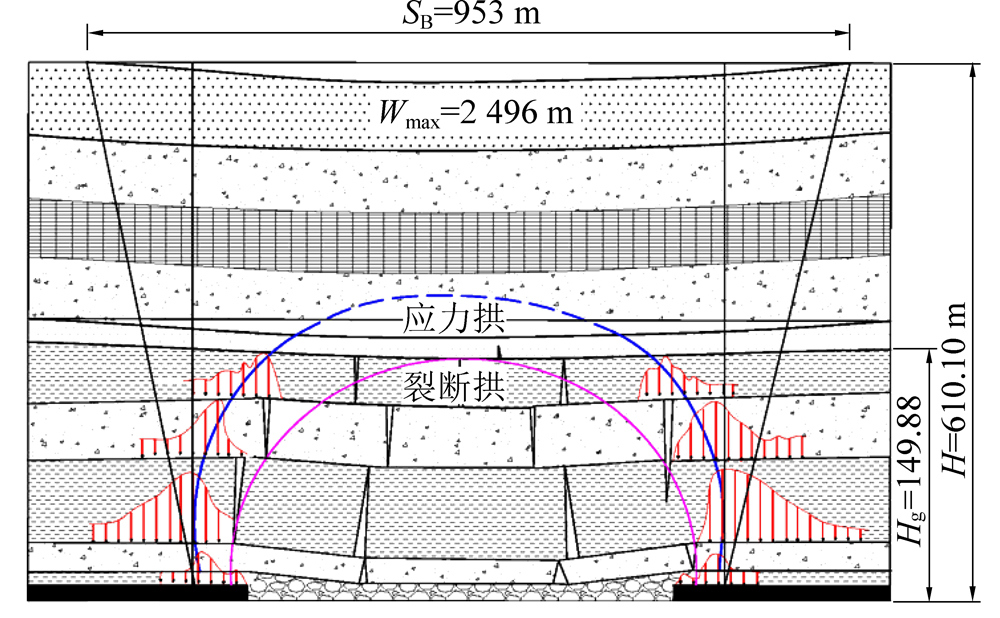 近年来,无(小)煤柱巷道在我国取得了较大的发展。随着煤矿开采强度和深度的增加,沿空掘巷小煤柱巷道受二次采动动压影响更为剧烈。因此,研究在不同采动条件下,掌握“以岩层运动和支承压力分布”为核心,建立其动态结构力学模型[1],实现由大煤柱护巷的传统开采系统向无(小)煤柱护巷开采体系的变革,是煤矿开采围岩破裂灾变机理及其控制的关键。我国学者针对动压巷道围岩控制问题,进行了大量的相关研究工作。袁亮等[2]对煤矿深部围岩巷道控制理论与支护技术,提出了针对各类围岩进行深部岩巷围岩稳定控制的技术措施体系。张农等[3]对千米深井高地压软岩巷道沿空留巷案例分析研究,采用“三高”锚杆+锚索梁初始支护、锚索梁+注浆超前加固、工字钢梁+铰接顶梁辅助支护、膏体材料泵送充填构筑墙体,有效控制了深部沿空留巷帮部及顶板剧烈变形。彭林军等[4]通过数值模拟手段研究确定了特厚煤层分层综采沿空掘巷煤柱的合理尺寸及上覆岩层防控技术。张东升等[5]研究了综放沿空留巷围岩变形影响因素的分析,得到了各因素对围岩最大应力的回归方程。孔令海等[6]对特厚煤层综放工作面煤柱合理宽度的微地震监测研究。侯朝炯等[7]在煤层巷道两帮煤体应力、极限平衡区的探讨研究,分析开采深度、煤层厚度、应力集中系数等因素对界面应力和极限平衡区宽度的影响。王卫军等[8]对沿空掘巷实体煤帮应力分布及围岩损伤关系分析,探讨了支承压力分布与煤岩厚度、弹性模量等参数的关系,对沿空巷道的维护与底鼓机理及控制的研究。郑西贵等[9]研究了掘采全过程沿空掘巷小煤柱应力分布,提出确定沿空掘巷合理煤柱宽度时,不仅需考虑掘巷扰动影响,还应将本工作面的超前采动影响作为一个重要影响因素。秦永洋等[10]研究了深井沿空掘巷煤柱合理宽度及支护参数优化。谢生荣等[11]对深部巷道锚喷注强化承压拱支护机理与应用研究。康红普等[12]对锚杆支护应力场测试及其分析,测试了单根与2根锚杆在不同拉伸载荷下的支护应力值及应力场分布特征,分析了2根锚杆形成的支护应力场相互叠加与影响的特点。成云海等[13]对特厚煤层综放开采采空区侧矿压显现特征及其应用研究。何富连等[14]在窄煤柱综放巷道钢梁桁架非对称支护机理与应用研究,得出非对称弯矩减小量分布特征,探讨其与非对称变形的一致性,并结合现场实践确定控制方案。王书文等[15]对采空区侧向支承压力演化及微震活动全过程实测研究。成云海等[16]对特厚煤层综放开采采空区侧向矿压特征及应用。李化敏[17]对沿空留巷顶板岩层控制设计研究。冯国瑞等[18]在采场上覆岩层面接触块体结构力学机理分析研究。肖同强等 [19] 对深部大断面厚顶煤巷道稳定性控制技术研究。顶煤较大下沉产生的附加水平应力作用下,顶煤和直接顶之间的层理面发生剪切破坏,并引起其附近煤体破坏,促进了顶煤"倒梯形"塑性区的形成。孟祥军[20]基于基本顶断裂位置的综放沿空掘巷煤帮支护技术,根据钻进粉煤量的变化判断基本顶断裂位置,确定沿空巷道帮锚索支护长度的方法。