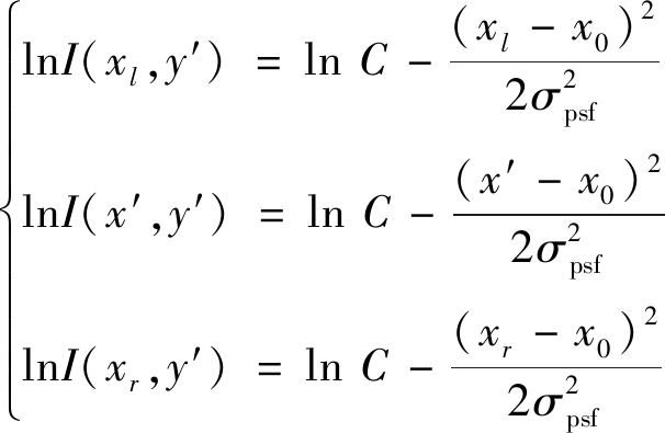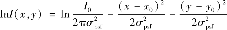 式中:I0为红外LED的总能量;(x,y)为高斯分布函数区域内一点坐标;(x0,y0)为光斑的成像中心坐标;σpsf为高斯函数的均方差。