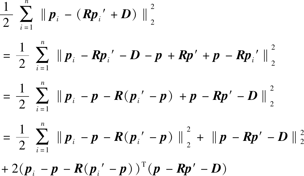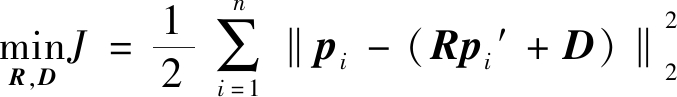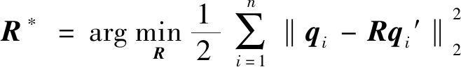 利用环形匹配结果,结合双目视觉测量原理就可以计算出相机坐标系的2组3D点空间坐标。那么基于双目视觉的悬臂式掘进机运动估计问题就变成了已知2组匹配好的3D点坐标求解相邻时刻的运动变换参数[18]。