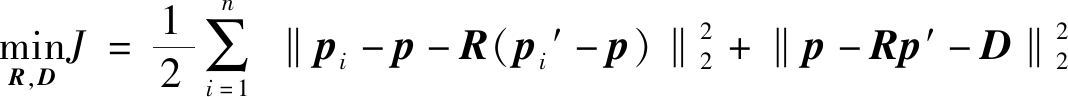 解得R后,代入公式(25)即可求出D。式中R是一个3×3的矩阵,表示两帧图像之间姿态的旋转矩阵,D是一个平移向量,表示2帧图像之间的位移变化量。
