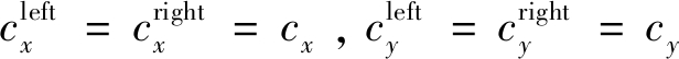 分别为左右相机主像素坐标;(cx,cy)为理想情况下左右相机主像素坐标。