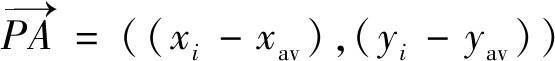 步骤①:建立匹配坐标系。在每幅图像中,取所有特征点像素坐标中x和y方向坐标值的最大和最小值,计算各自的平均值组成新的坐标A(xav,yav),以此为原点,x和y方向不变建立匹配坐标系。并求取每个特征点与坐标A(xav,yav)的特征向量。