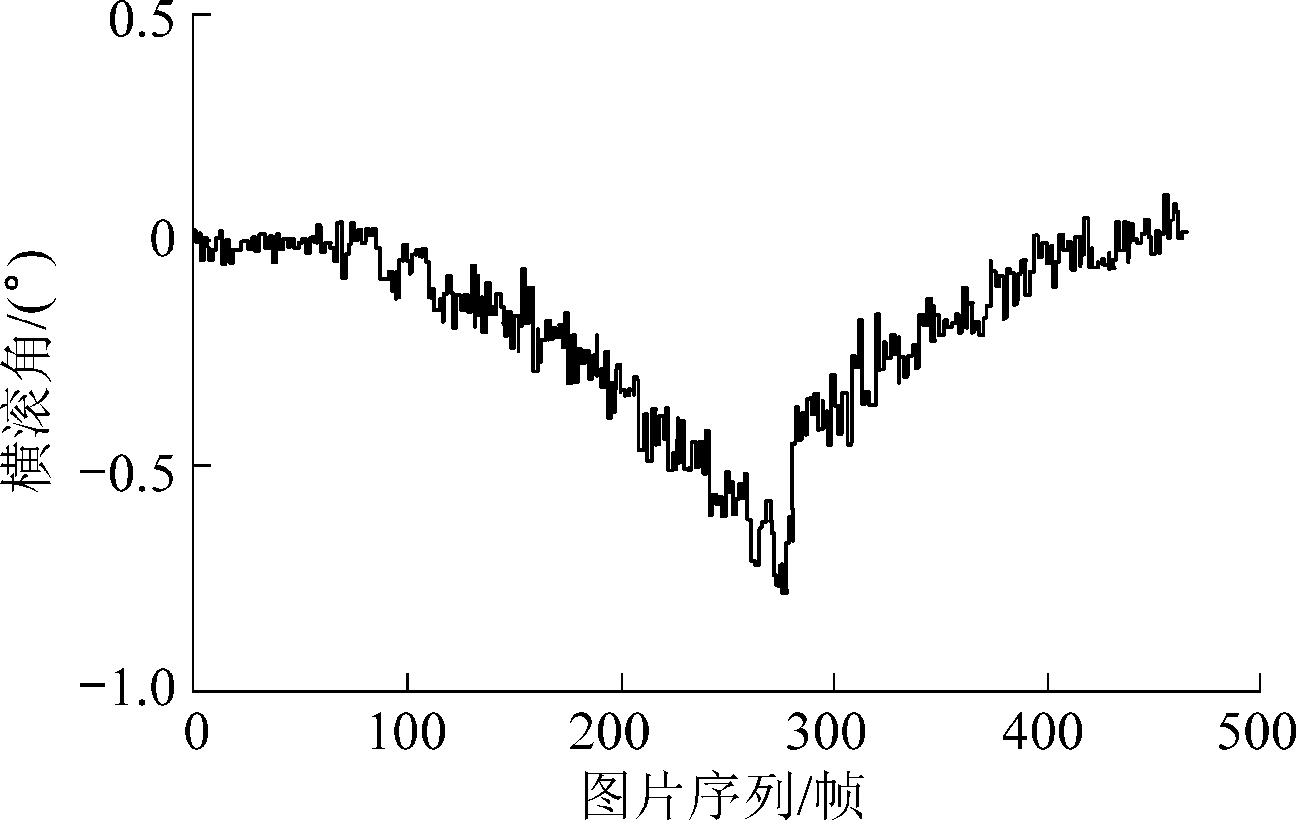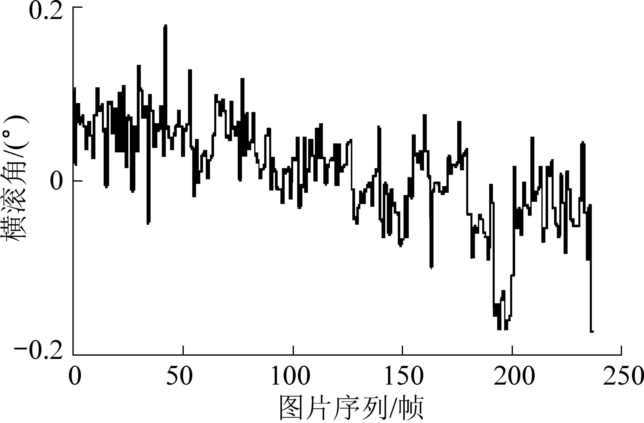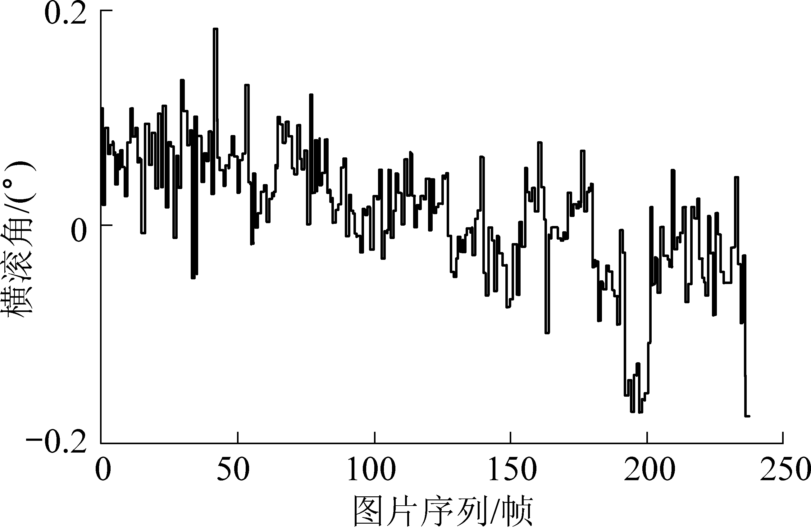 其中Y方向的测量误差在(-20 mm,0 mm)之间,Z方向测量误差在±10 mm以内。如图20—图22所示,分别是通过双目视觉位姿测量方法计算得到的横滚角、航向角和俯仰角姿态值。