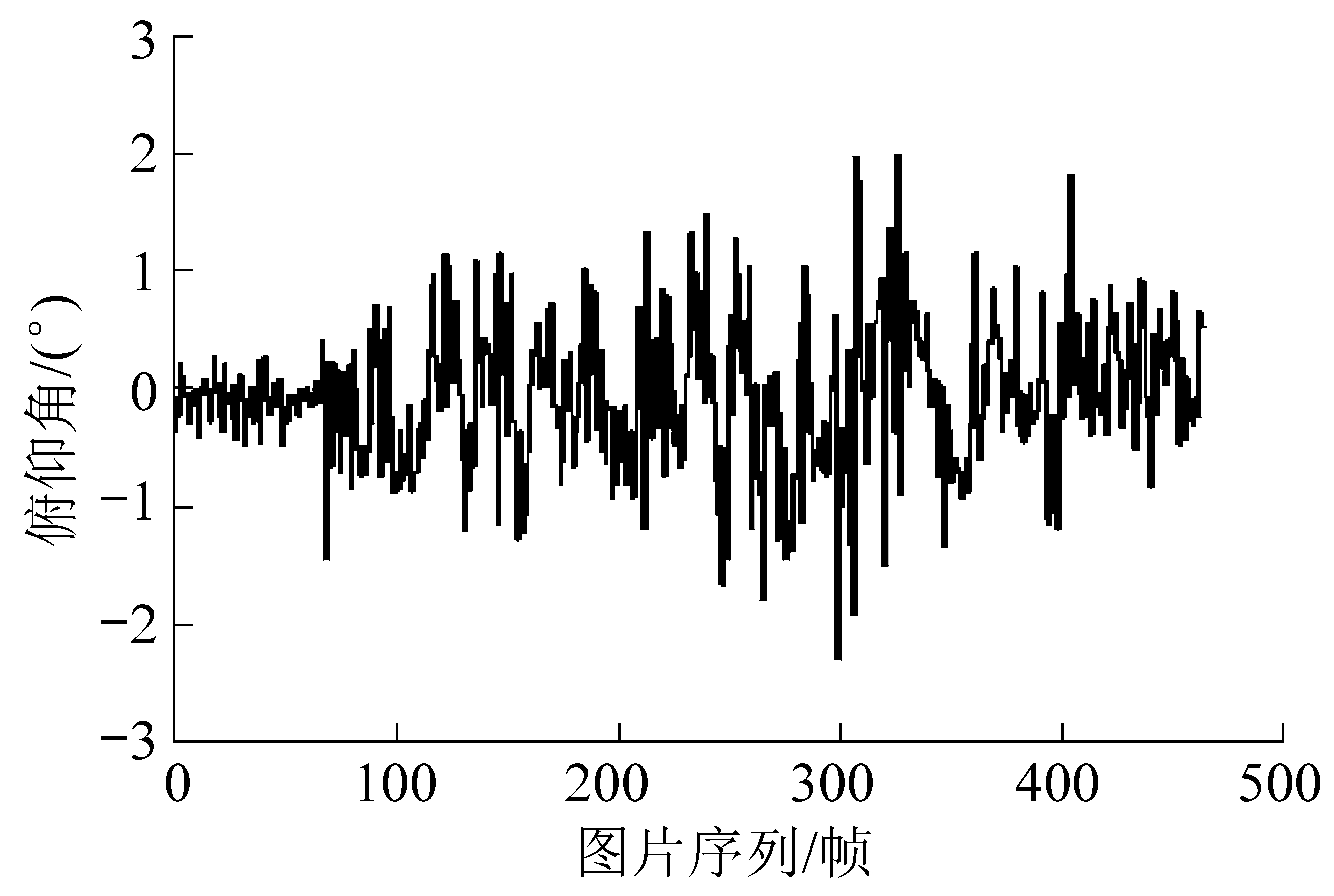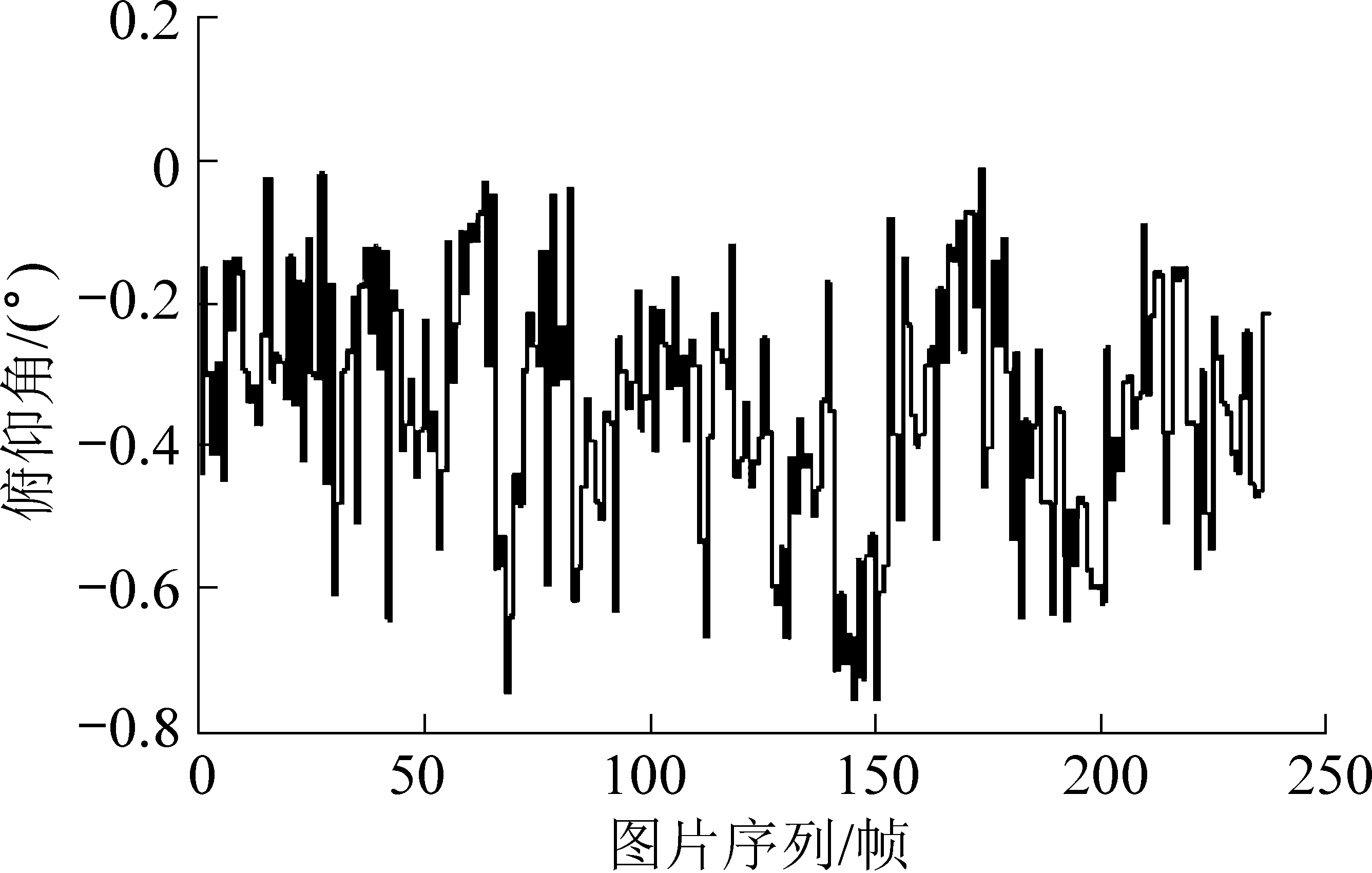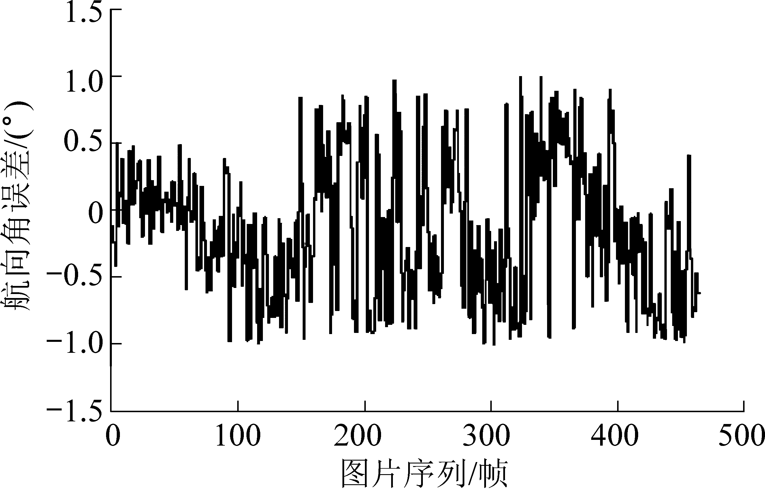 其中Y方向的测量误差在(-20 mm,0 mm)之间,Z方向测量误差在±10 mm以内。如图20—图22所示,分别是通过双目视觉位姿测量方法计算得到的横滚角、航向角和俯仰角姿态值。