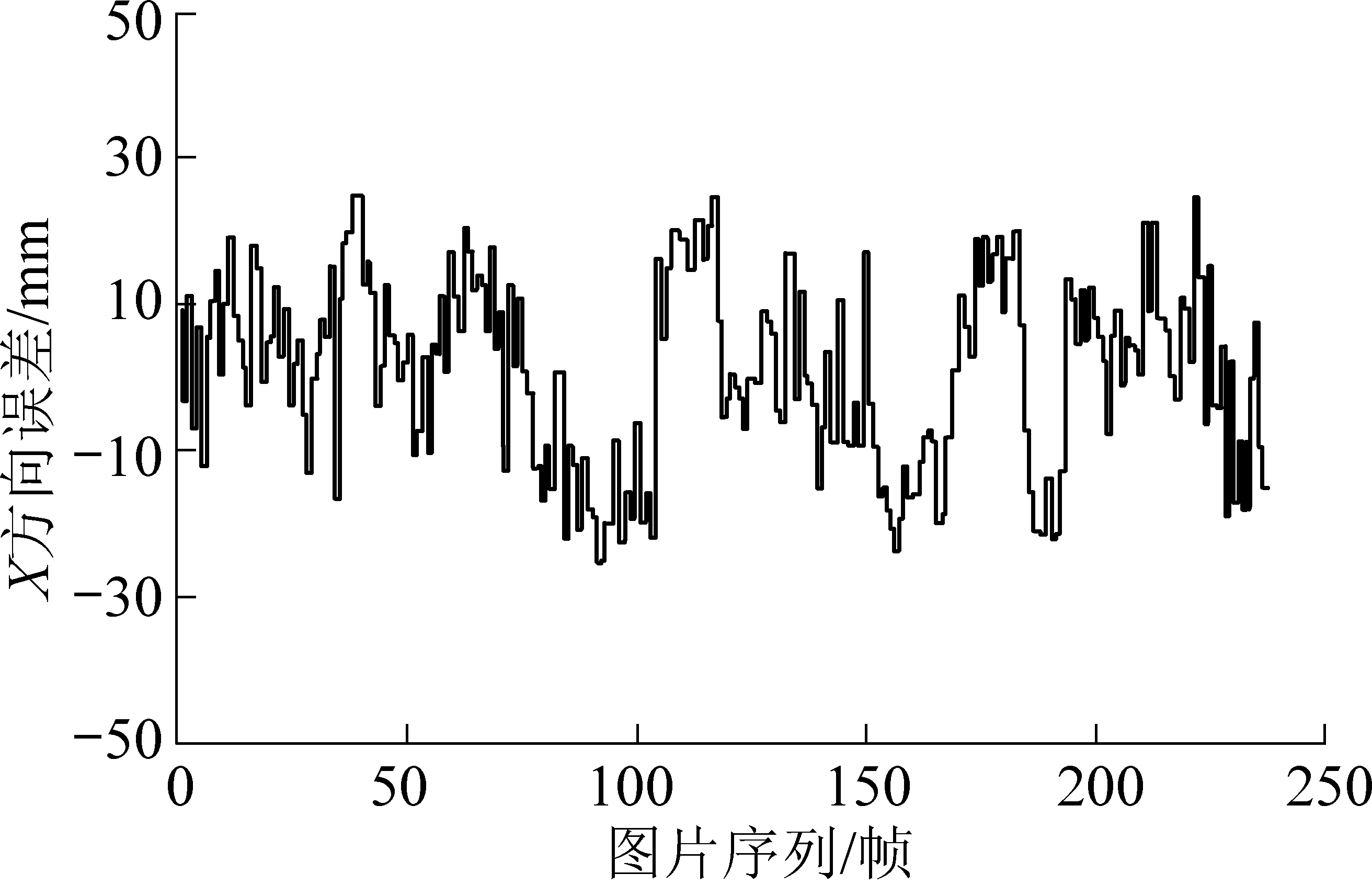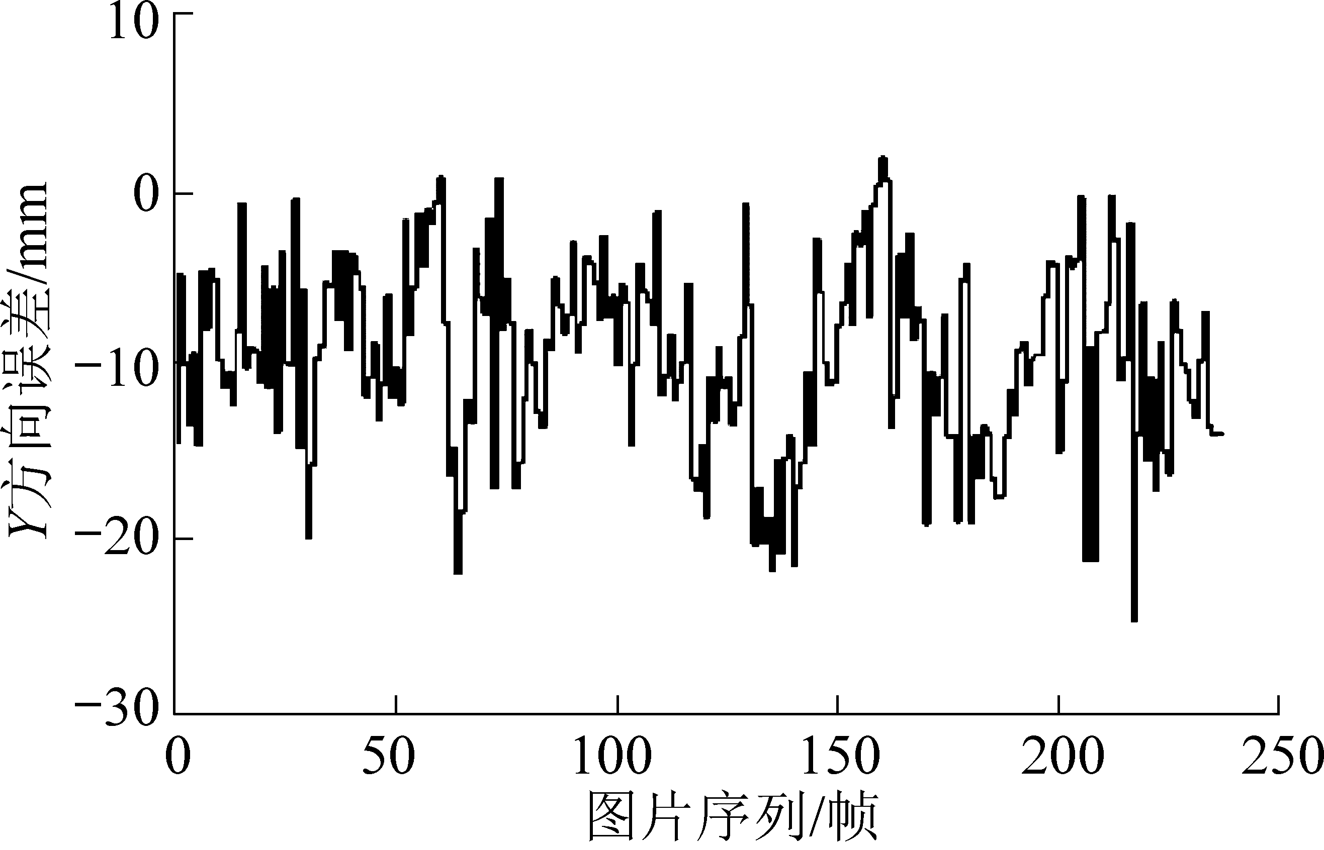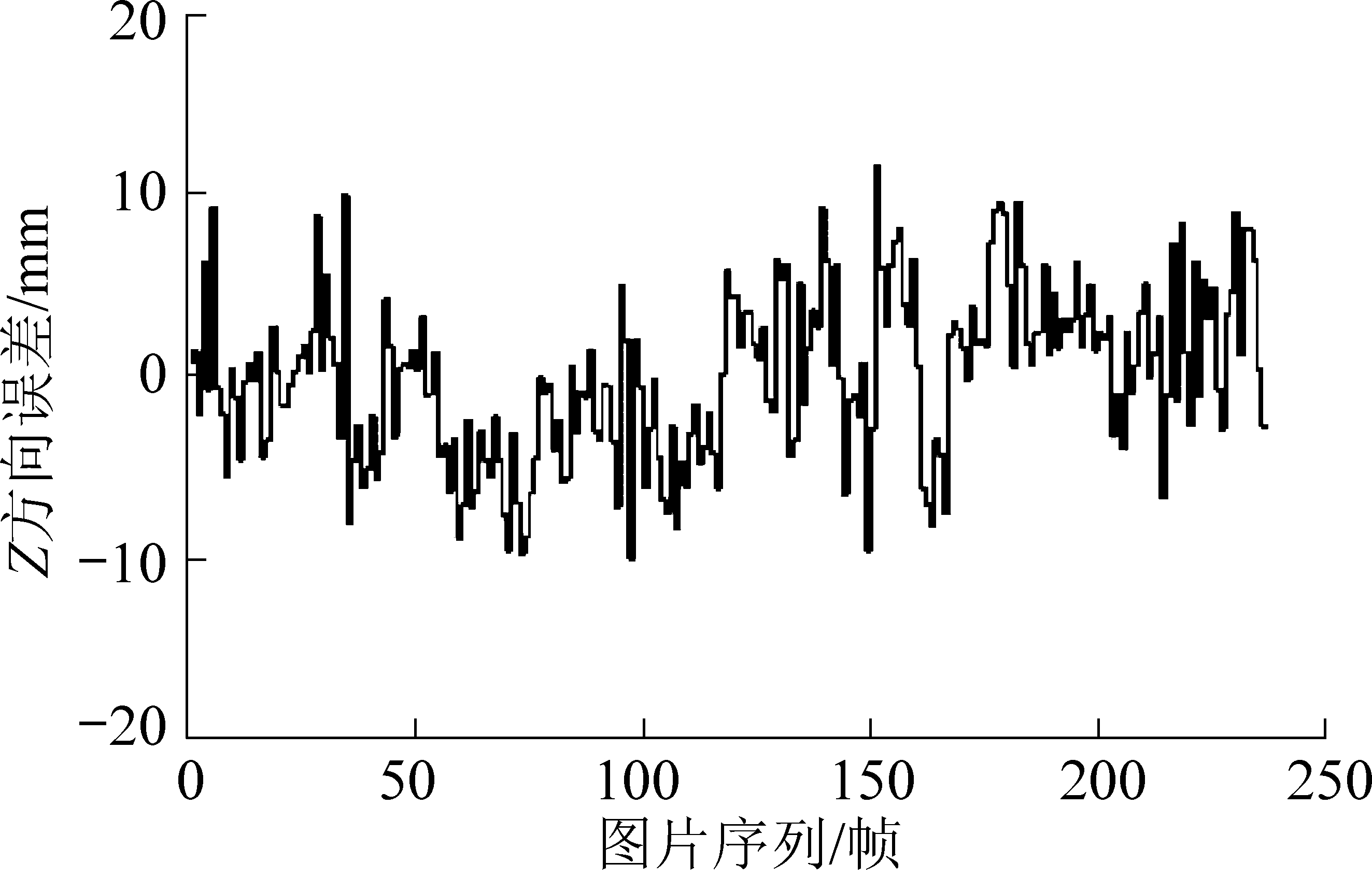 如图18所示是X方向位移测量误差,可以看出误差在±30 mm以内。如图19和图20是在移动过程中双目视觉位姿测量得到的Y和Z方向的位移变化情况。