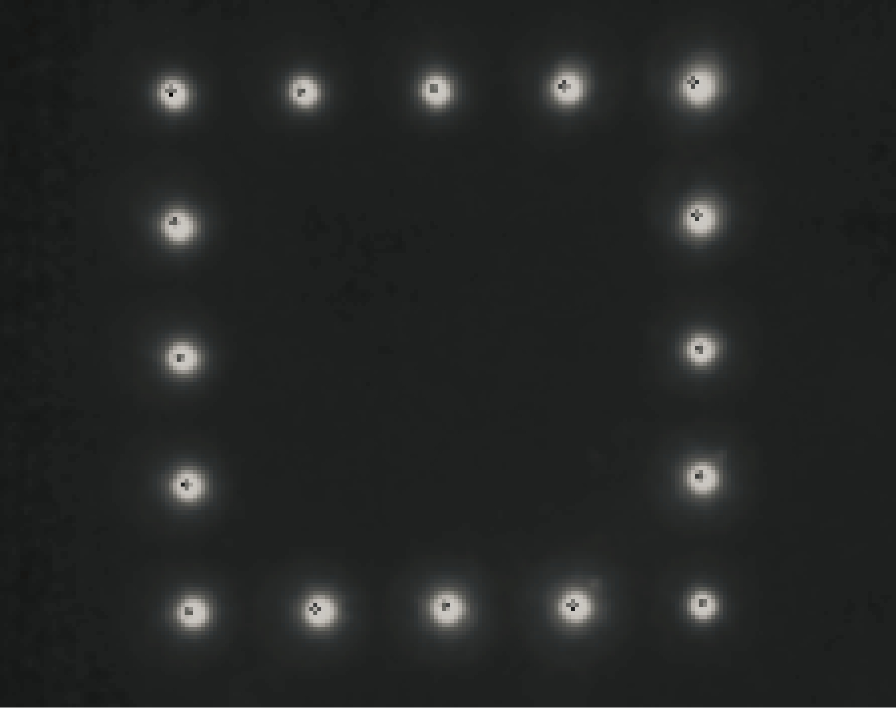 1)煤矿井下高粉尘、低照度的实际工况环境,造成了严重的图像特征缺失,因此采用稳定的红外LED光源组成特征标靶作为视觉测量的目标。