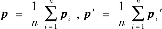 以Pl1图像中为例,假设特征点Pi坐标为(xi,yi),其中(i=1,2,3,…,n)。计算xi中的最大值xmax和最小值xmin,并计算两者的平均值,记为xav;同理计算出yi中的最大值ymax和最小值ymin,并计算两者的平均值,记为yav。组成新的坐标点A(xav,yav)。