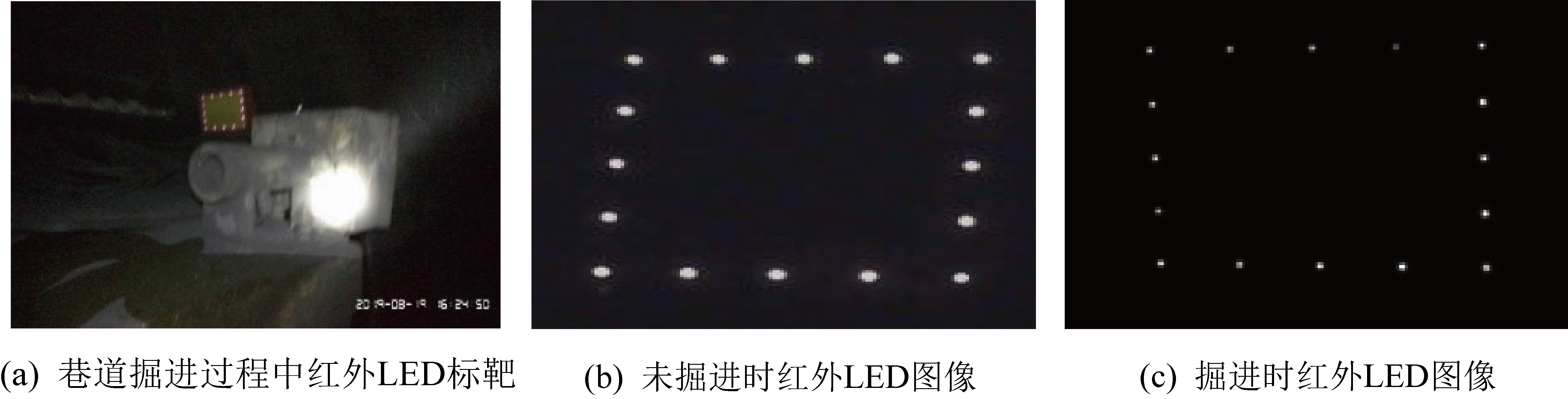 红外LED标靶放置在掘进机后方一定位置处,受到的粉尘和水雾影响较小,因此采用红外LED作为视觉测量中的图像特征。