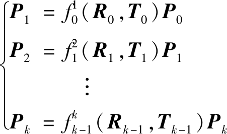 通常初始位姿P0由煤矿地测科利用全站仪测量得到。设Pk为第k个位姿,Rk,Tk,k=0,1,2,…,k表示每1帧的旋转矩阵和平移矩阵。则具体每个时刻的位姿计算如下: