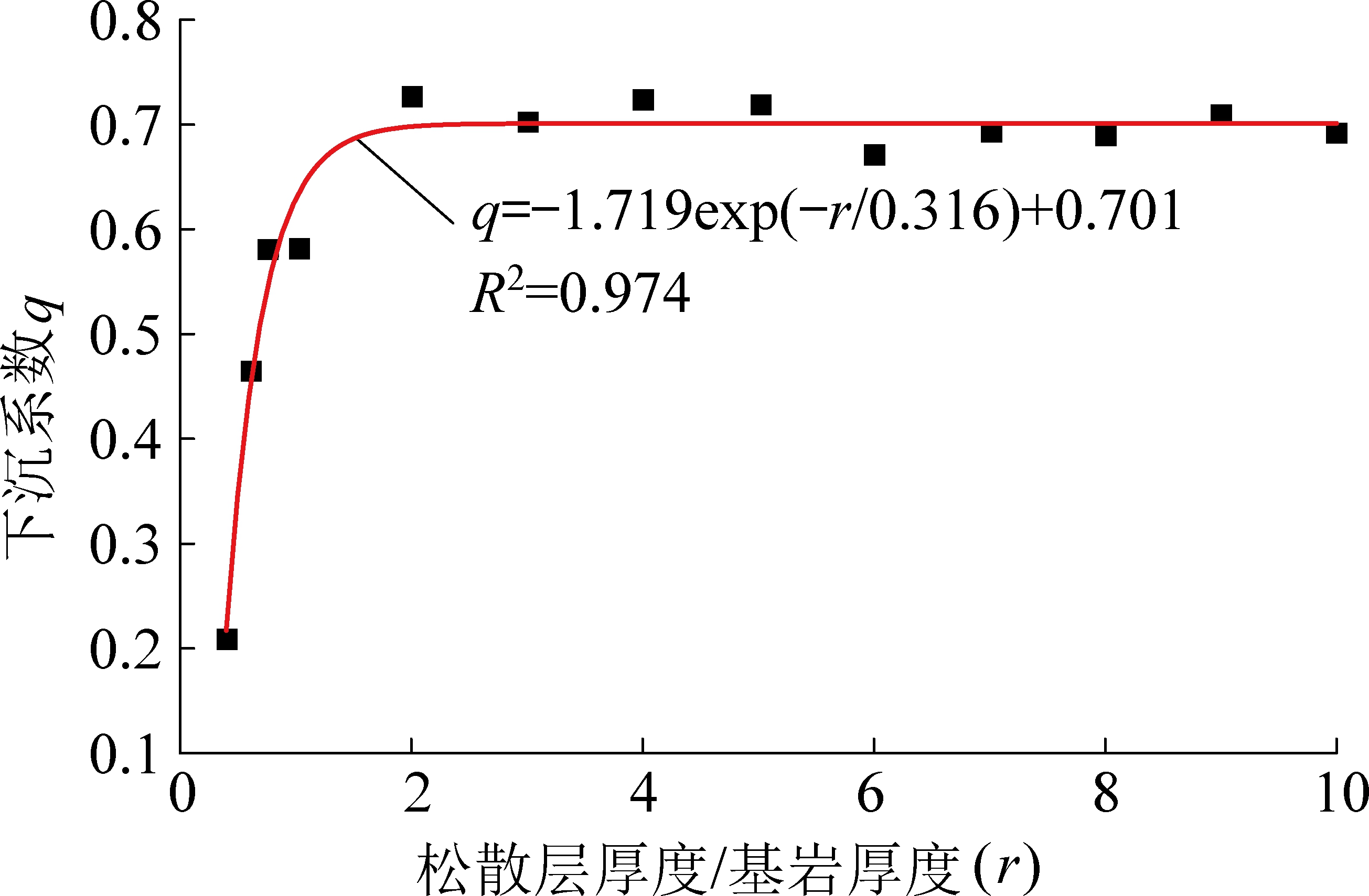1)下沉系数基本呈现当松散层厚度与基岩厚度比r<2时,随着r的增大下沉系数迅速增大,而当r≥2时下沉系数基本趋于稳定,不再随r的增大而增大。