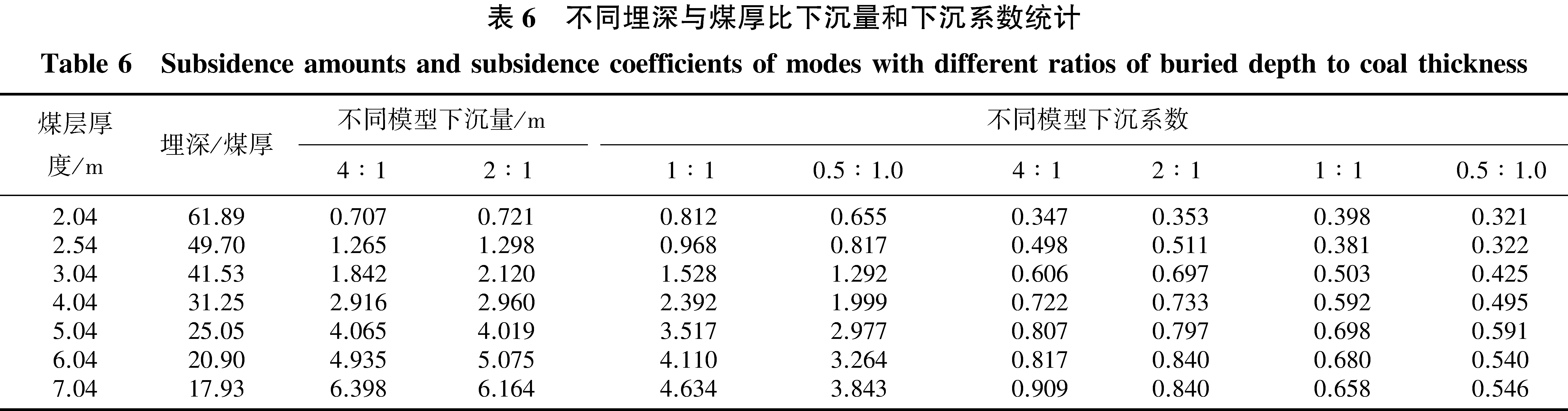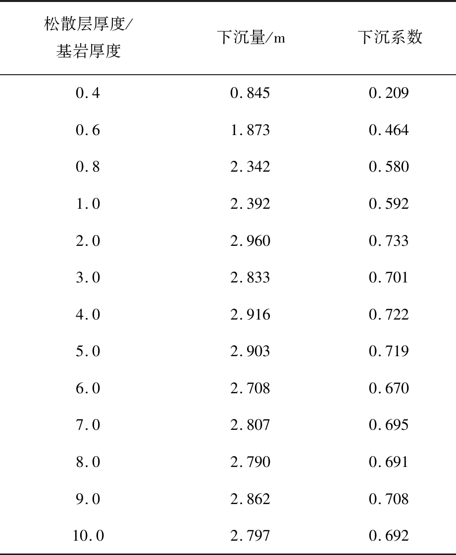 Table 5 Subsidence amounts and subsidence coefficients of models with different ratios of loose layer thickness to bedrock thickness