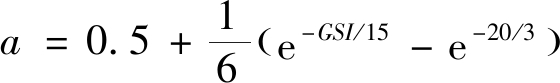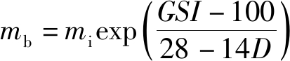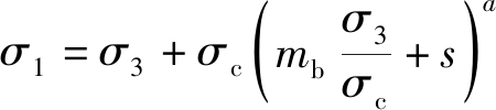 其中:σ3为岩体的围压;σ1为岩体在对应围压下破坏时的应力;σc为完整试块的单轴抗压强度;mb,s,a分别为岩体参数。在节理岩体中,CAI等[25]将地质强度指标(GSI)引入具体参数计算,各参数计算公式为