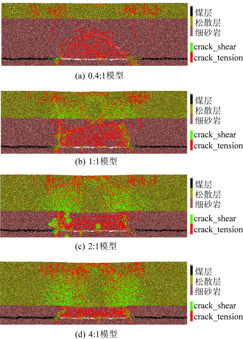 图4 不同松散层厚度与基岩厚度比的裂隙扩展规律