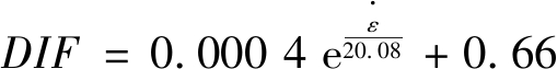 由图4可知,在高应变率动力冲击下,50%替代率再生细骨料砂浆的DIF随应变率增加而非线性增大,且增速逐渐变快。在同等应变率下,50%替代率再生细骨料砂浆DIF高于一般水泥砂浆,且静态抗压强度略高于一般水泥砂浆,综合而言,抵抗动态冲击能力较强,可应用于防护结构。应用指数幂型关系式拟合50%替代率再生细骨料砂浆DIF与应变率关系,式(4)预测曲线与试验结果具有较好的一致性。