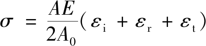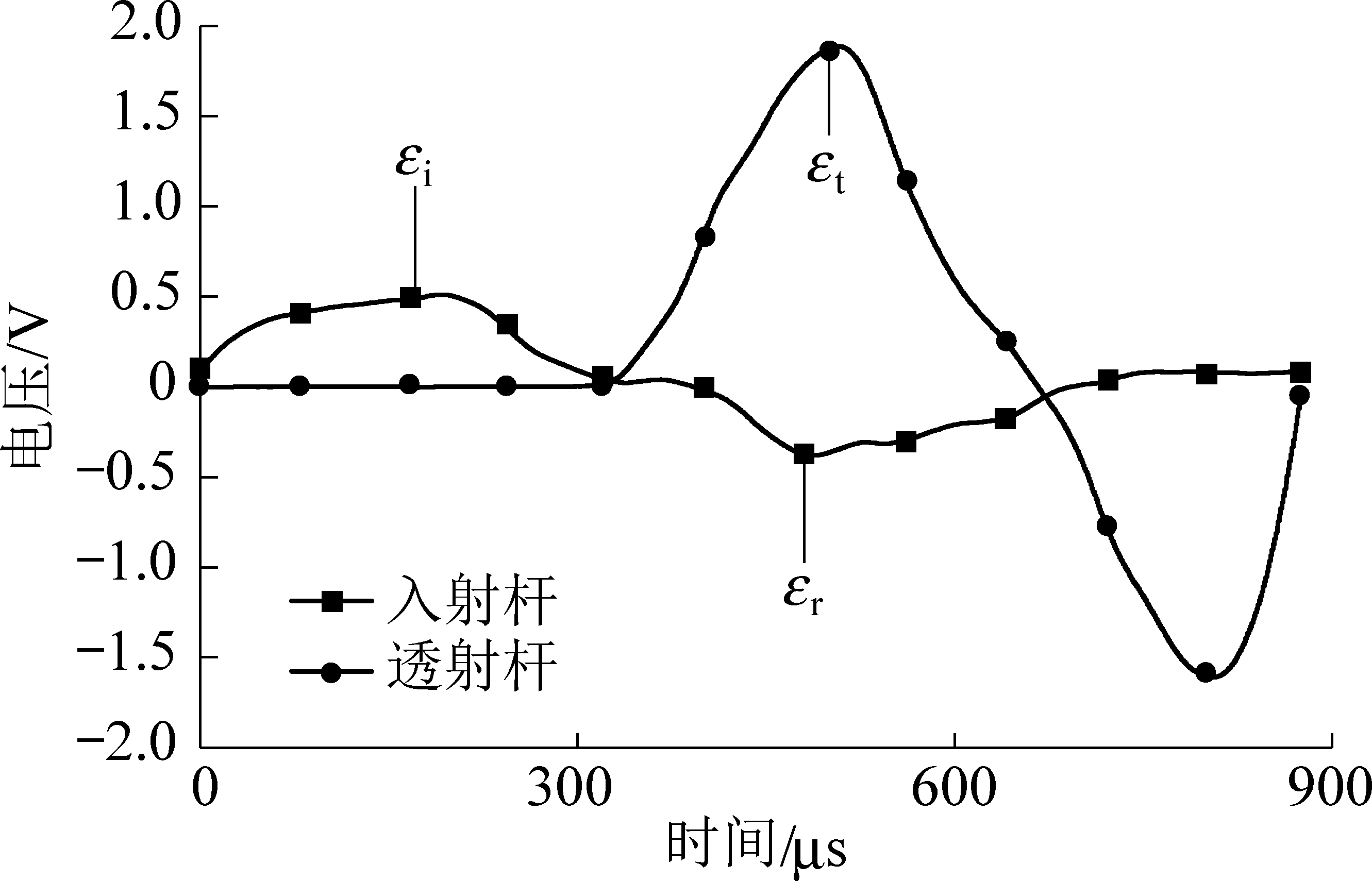 为应变率;C0为压杆对应的弹性波速;A、E为杆的横截面积、弹性模量;A0、l0为试样的横截面积、长度;εi为λ射波所对应的应变脉冲;εr为反射波所对应的应变脉冲;εt为透射波所对应的应变脉冲[15]。