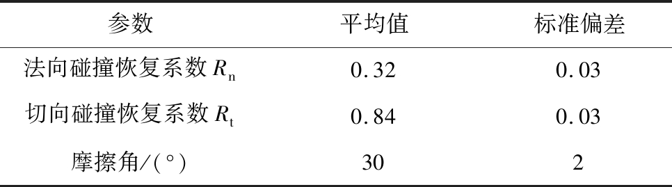 参数平均值标准偏差法向碰撞恢复系数Rn0.320.03切向碰撞恢复系数Rt0.840.03摩擦角/(°)302