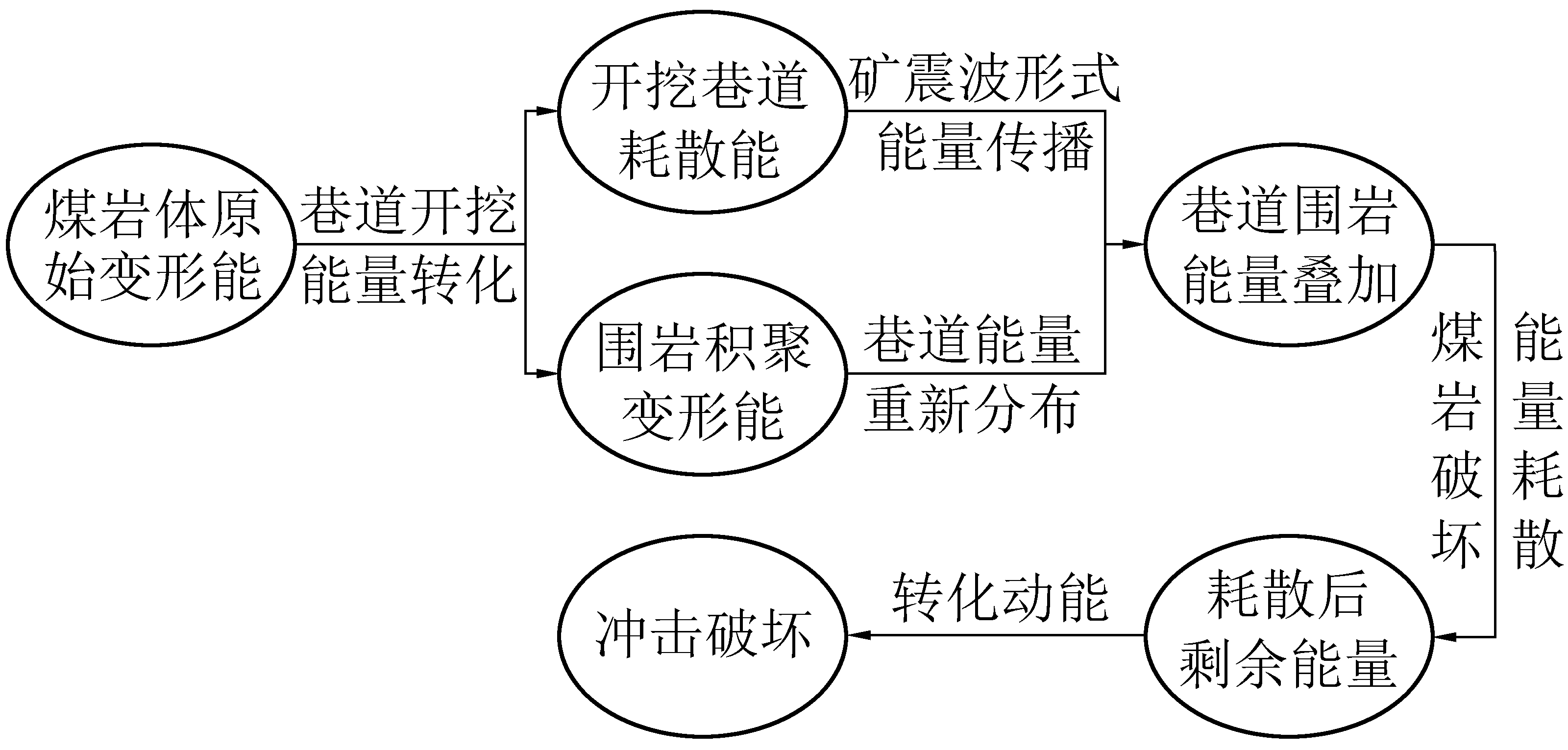 图3 核桃峪矿实体煤巷道冲击破坏能量传递流程