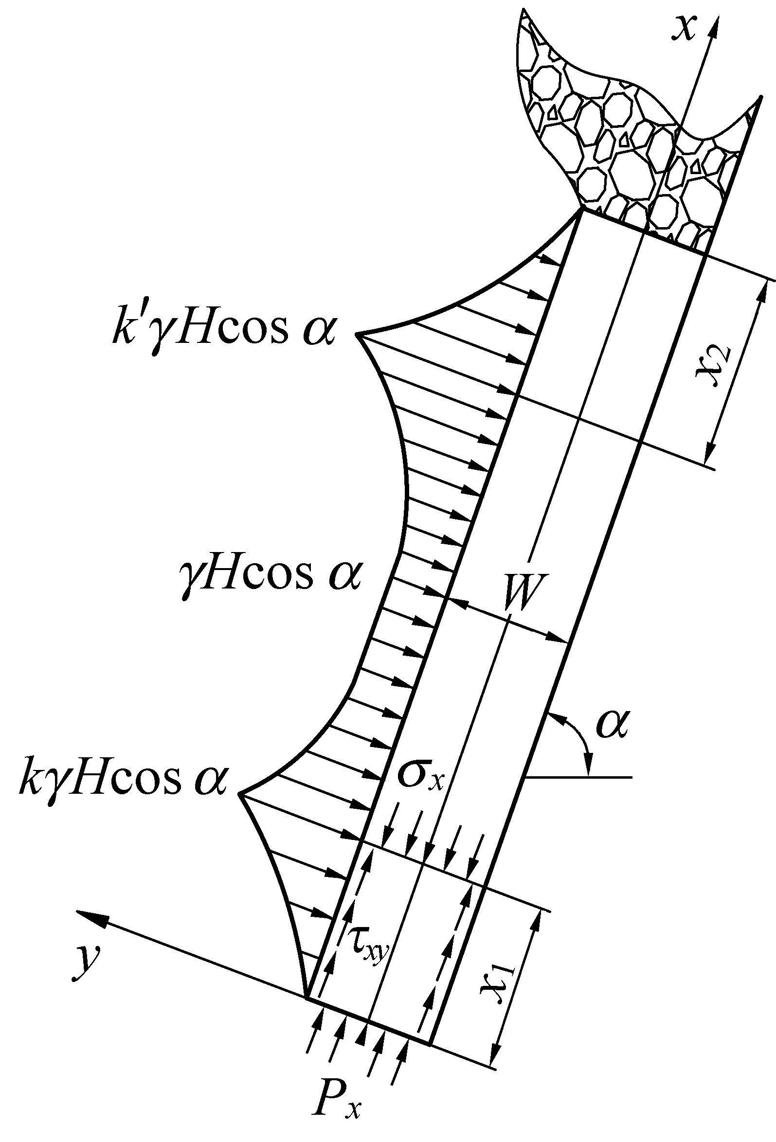 σx—煤体上正应力;τxy—顶底板滑移面上剪应力