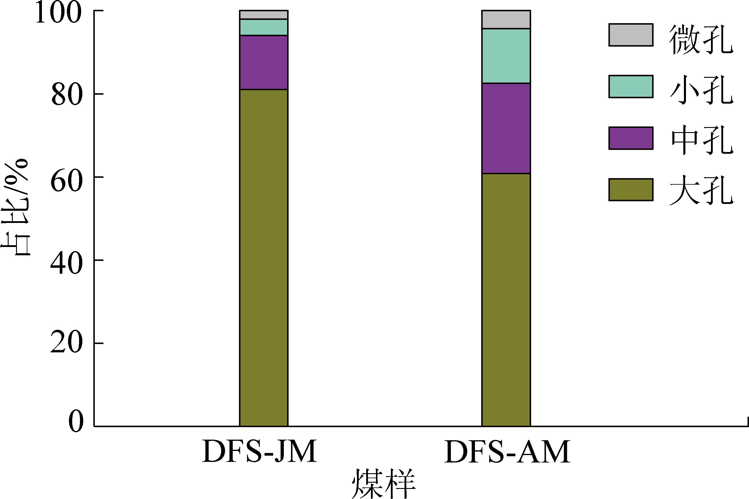 图4 镜煤、暗煤不同孔径段的孔容分布