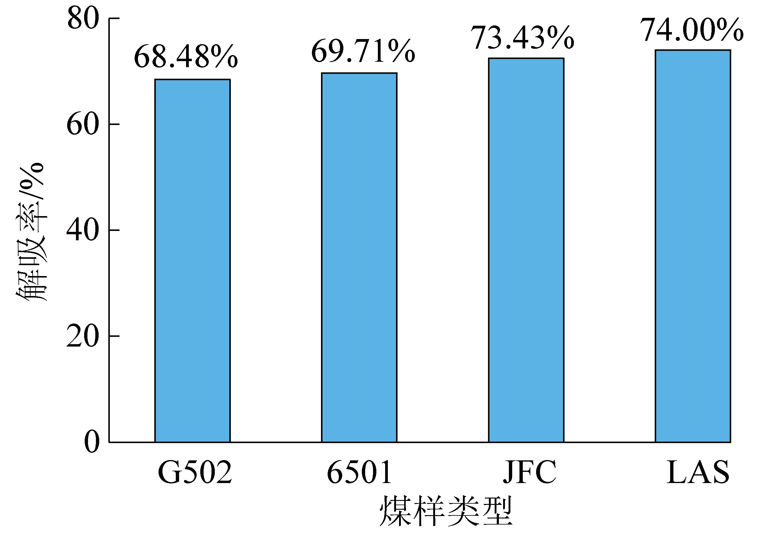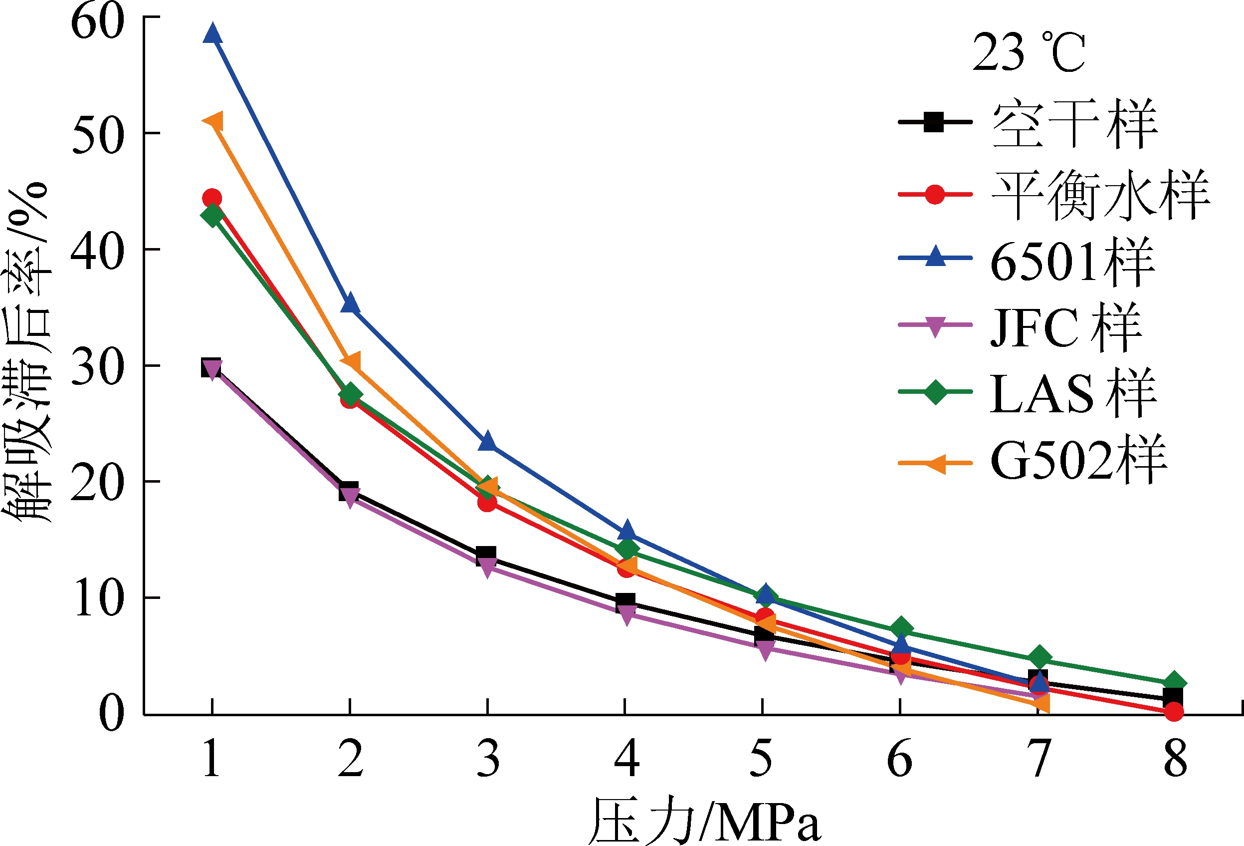 相同温压条件下,解吸滞后率的大小关系为:6501样>G502样>LAS样>JFC样。