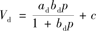 式中:Vd为煤层气解吸到p压力下的吸附量,cm3/g;ad为煤样极限吸附量,cm3/g;bd为吸附/解吸速度与吸附热综合参数;c为常数或称残余吸附量,cm3/g。
