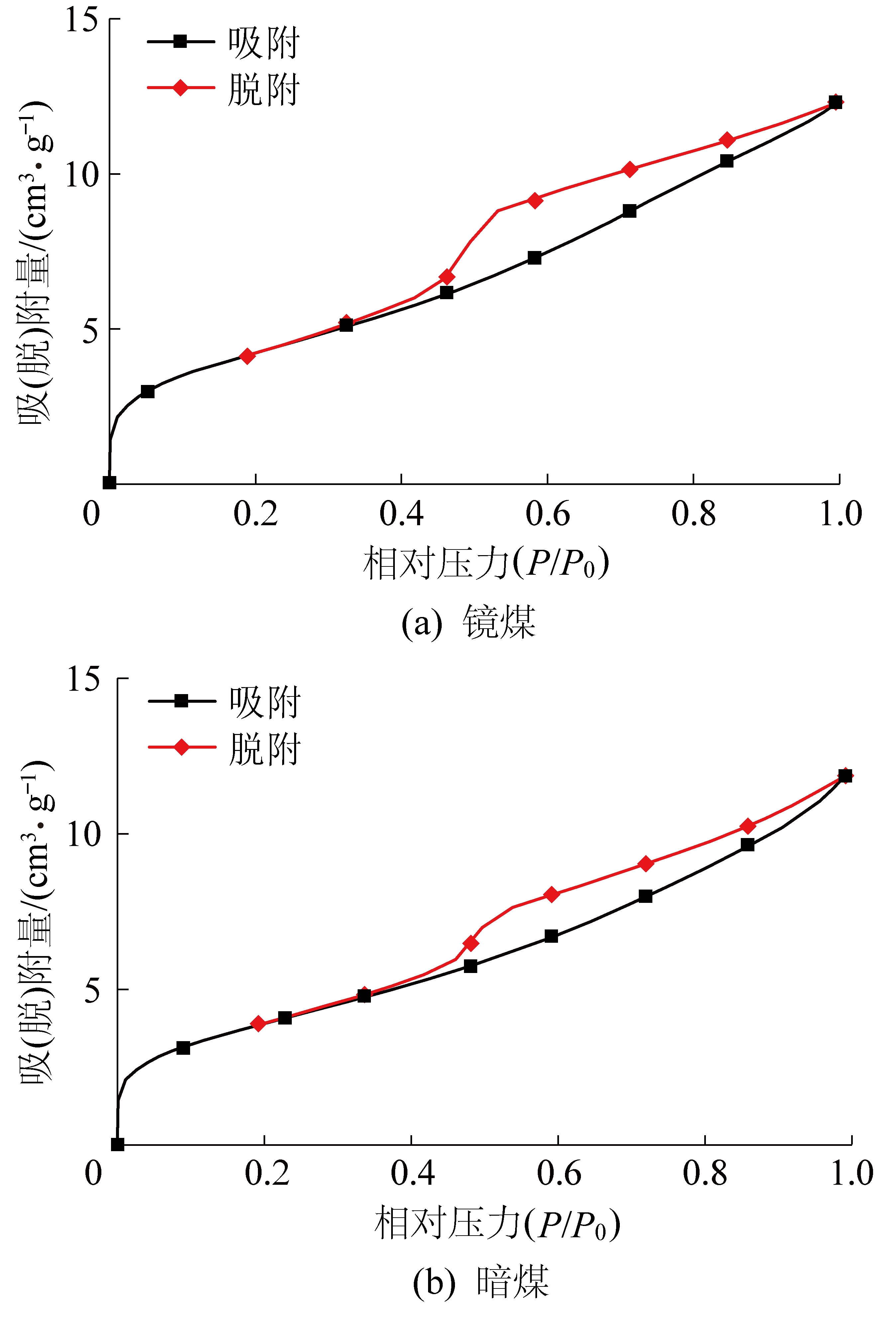 图6 镜煤和暗煤液氮吸(脱)附曲线
