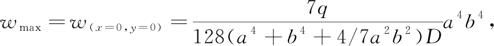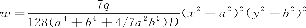 薄板的固定边条件是(w)x=±a=0,(∂w/∂x)x=±a=0;(w)y=±b=0,(∂w/∂y)y=±b =0。取挠度表达式为