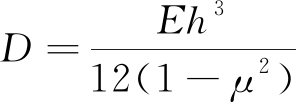 为薄板的弯曲刚度,h为板厚,E和μ分别为材料的弹性模量和泊松比。