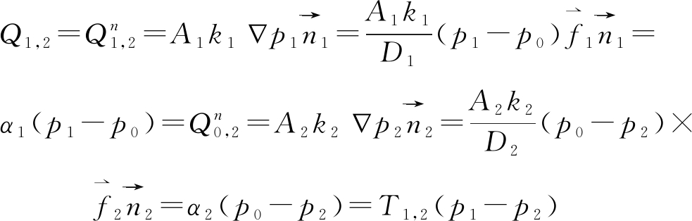 式中:Ai为网格1、2相交面的面积;ki为网格各自的渗透率;Di为网格中心点到相交面中心点的长度;