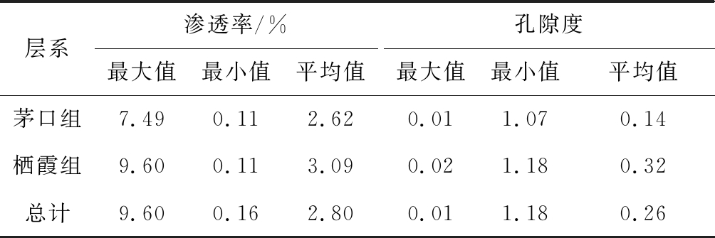 层系渗透率/%最大值最小值平均值孔隙度最大值最小值平均值茅口组7.490.112.620.011.070.14栖霞组9.600.113.090.021.180.32总计9.600.162.800.011.180.26