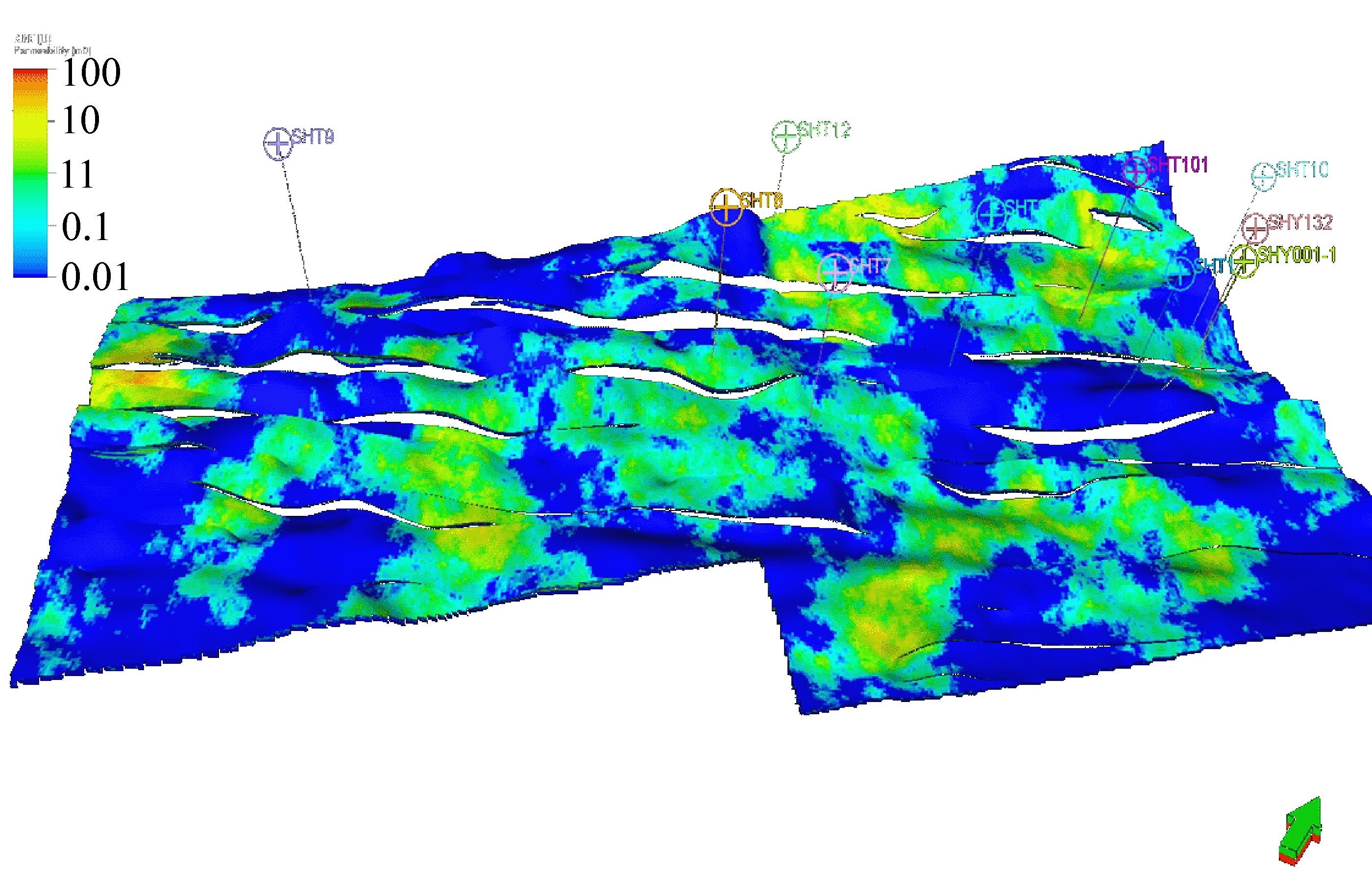 Fig.11 Distribution characteristics of formation permeability in Shuangyu stone area