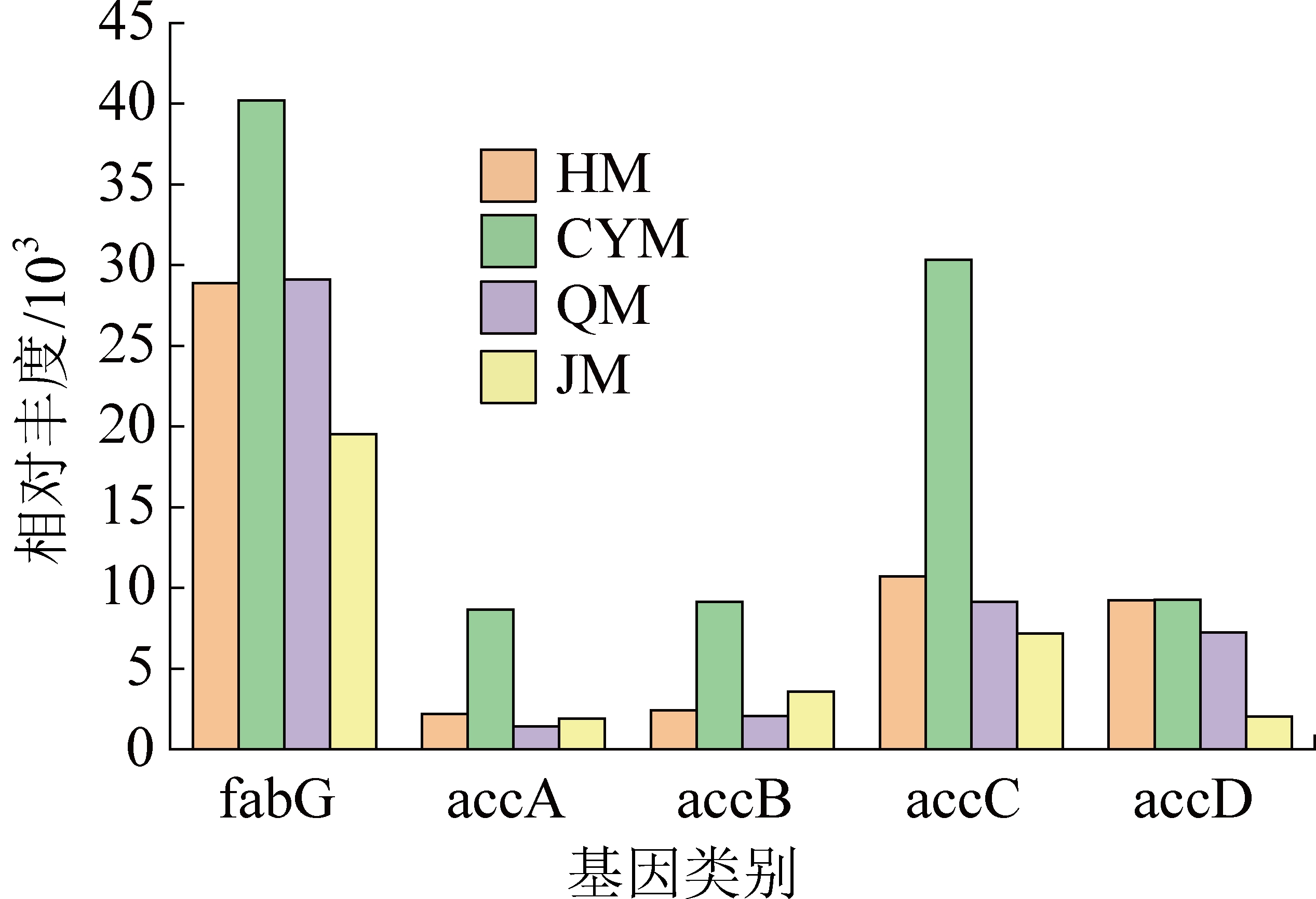 Fig.5 Abundance comparison of functional genes related to fatty acid biosynthesis