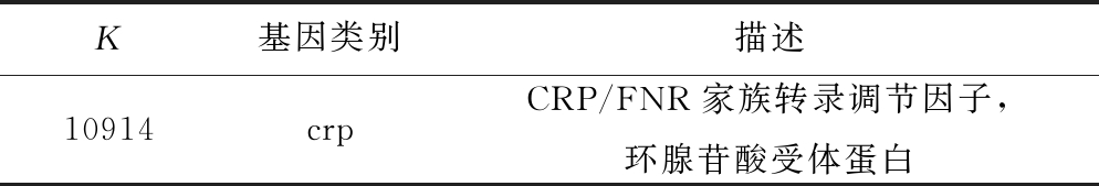 K基因类别描述10914crpCRP/FNR家族转录调节因子,环腺苷酸受体蛋白