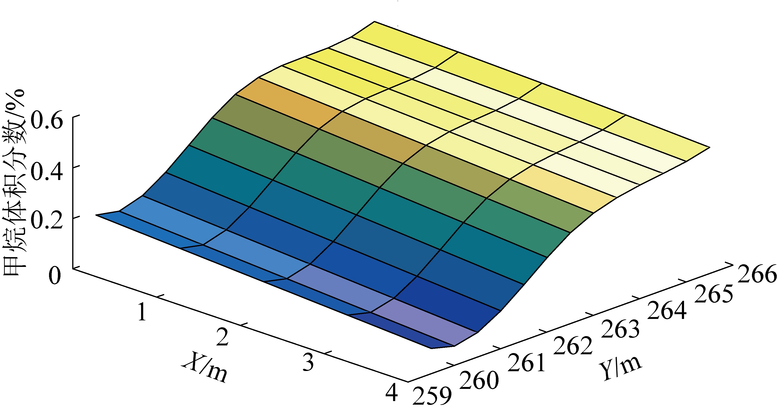 通过现场监测,在Y方向获得2组甲烷体积分数数据,每组数据包含13个点;在X方向获得13组数据,每组数据包含2个点。
