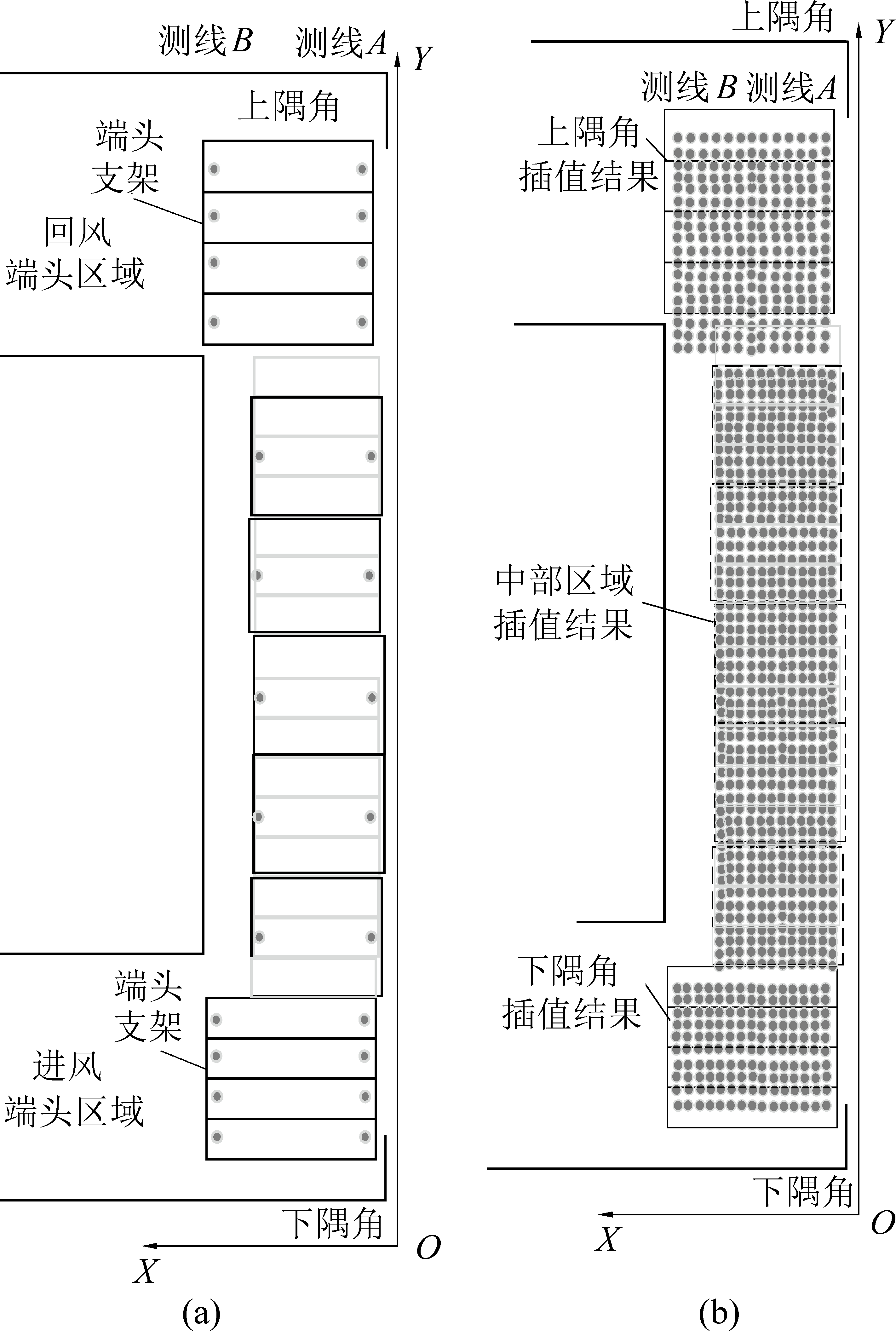 在甲烷感知终端多测点监测的基础上,构建工作面瓦斯浓度数字场还包括2个环节:①确定工作面区域甲烷感知终端布置方案;②由有限的甲烷监测点数据形成区域甲烷浓度数字场。在甲烷监测终端布置方案上,通过工作面瓦斯涌出分析和现场实测相结合的方式提出了工作面甲烷感知终端布置方案。