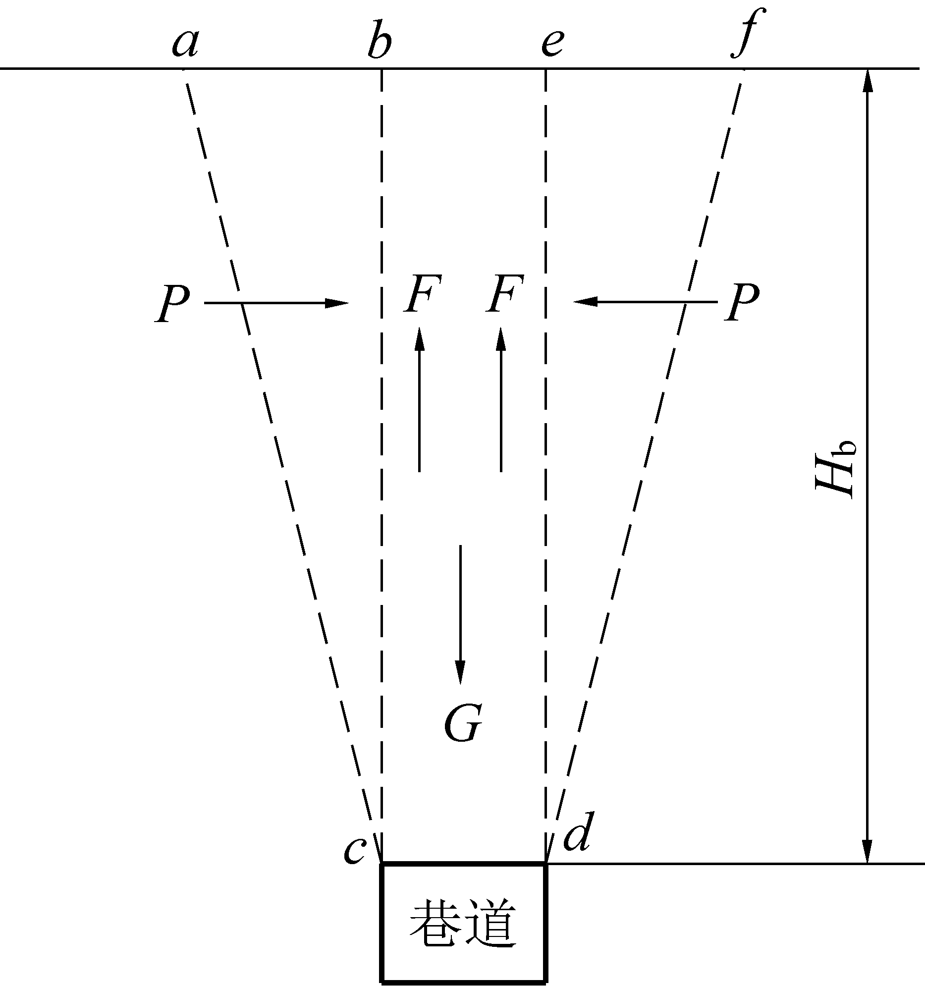 对于浅埋巷道极限承载高度Hb,可根据土力学极限平衡理论求出。