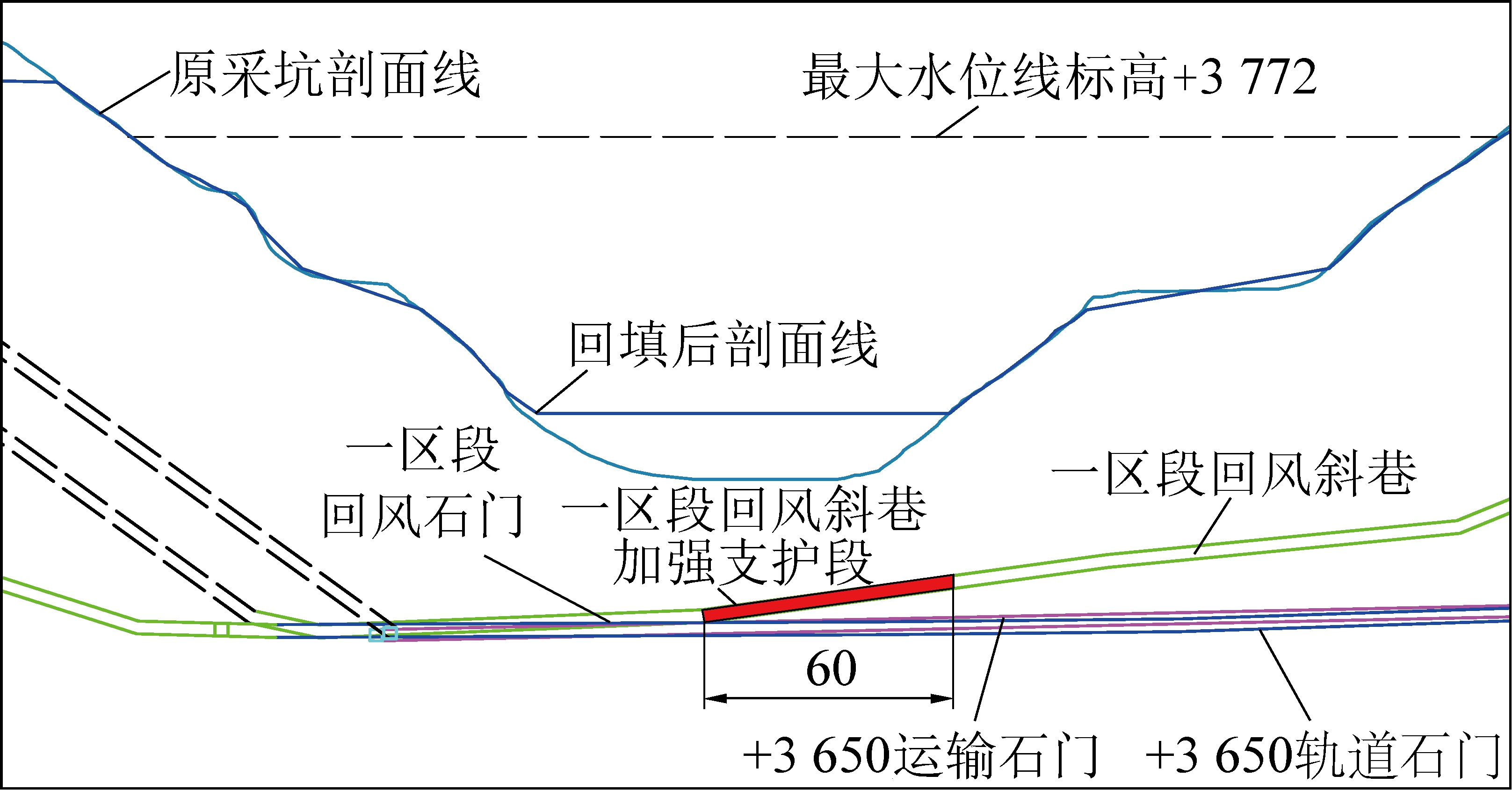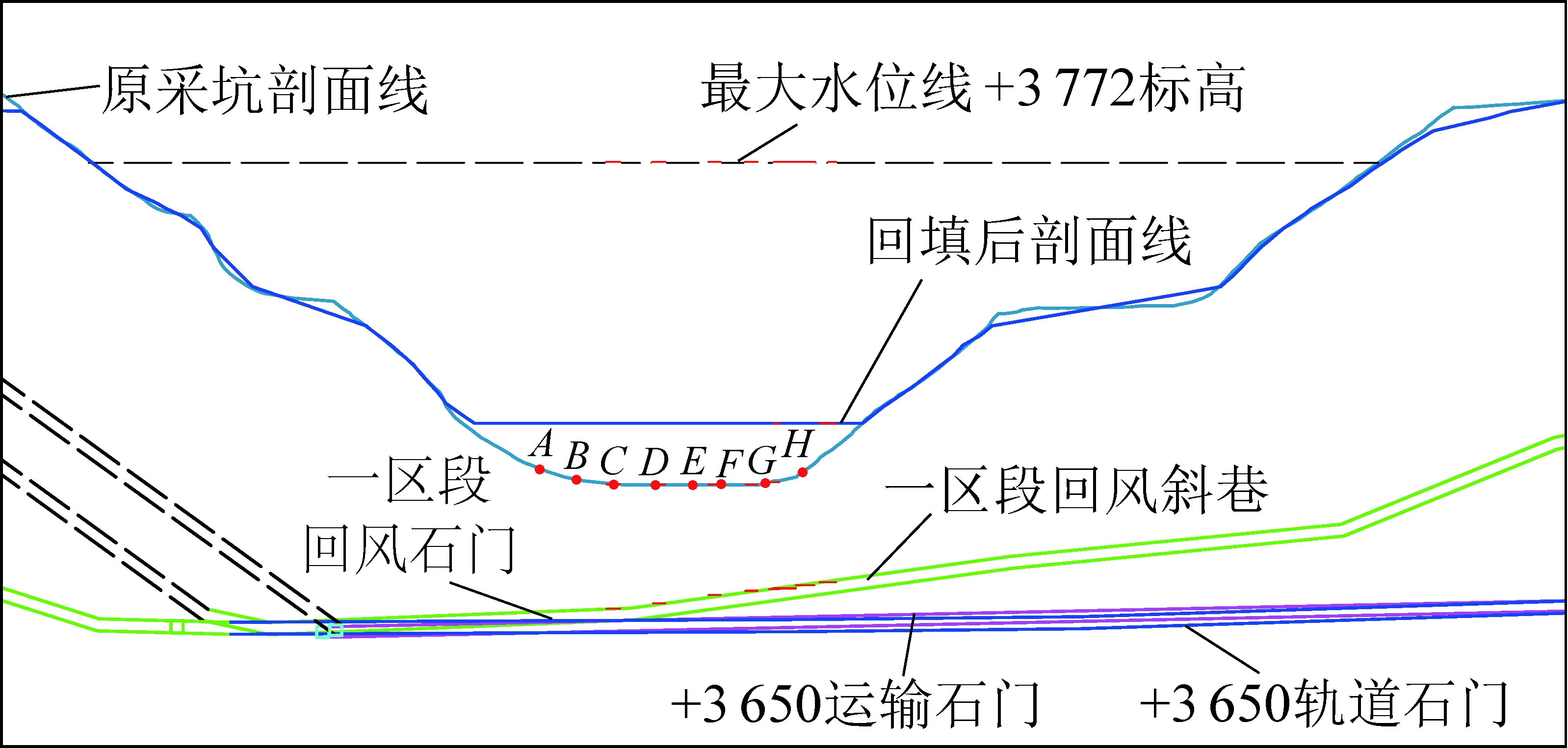 Fig.2 Cross section view of underground roadways and open-pit backfilling